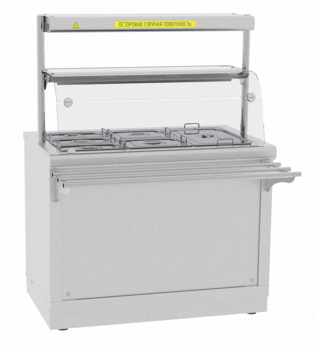 Электрический мармит кухонный 2-х блюд ЭМК-70Х с подогреваемой полкой предназначен для кратковременного хранения в горячем состоянии вторых блюд в функциональных емкостях и раздачи их потребителю.