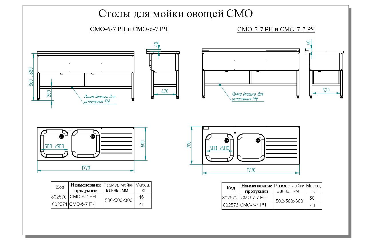 Столы для мойки овощей СМО предназначены для использования в качестве вспомогательного оборудования на предприятиях общественного питания