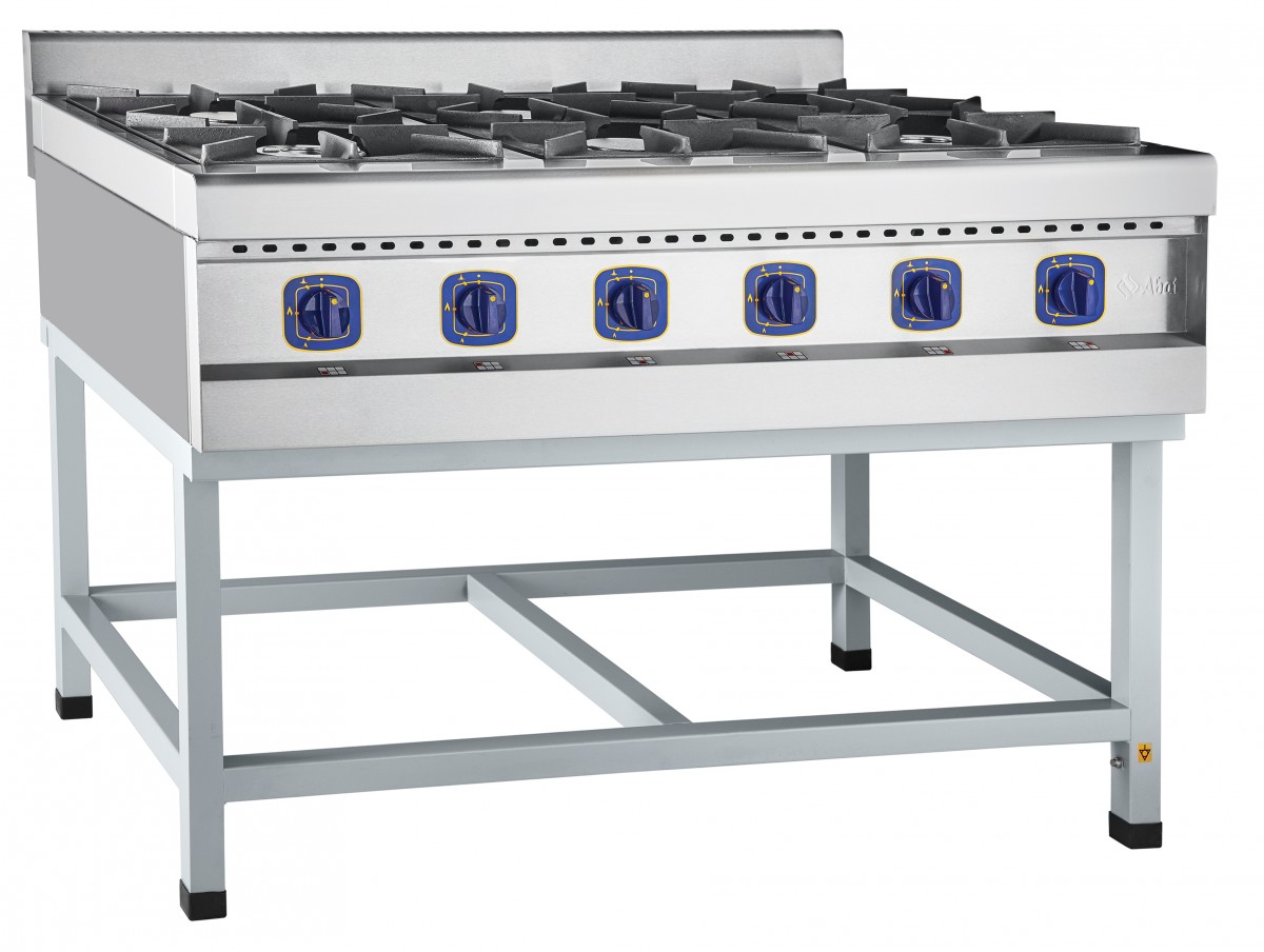 Газовая плита шестигорелочная на подставке ПГК-69П.Предназначена для приготовления первых, вторых и третьих блюд в наплитной посуде.
