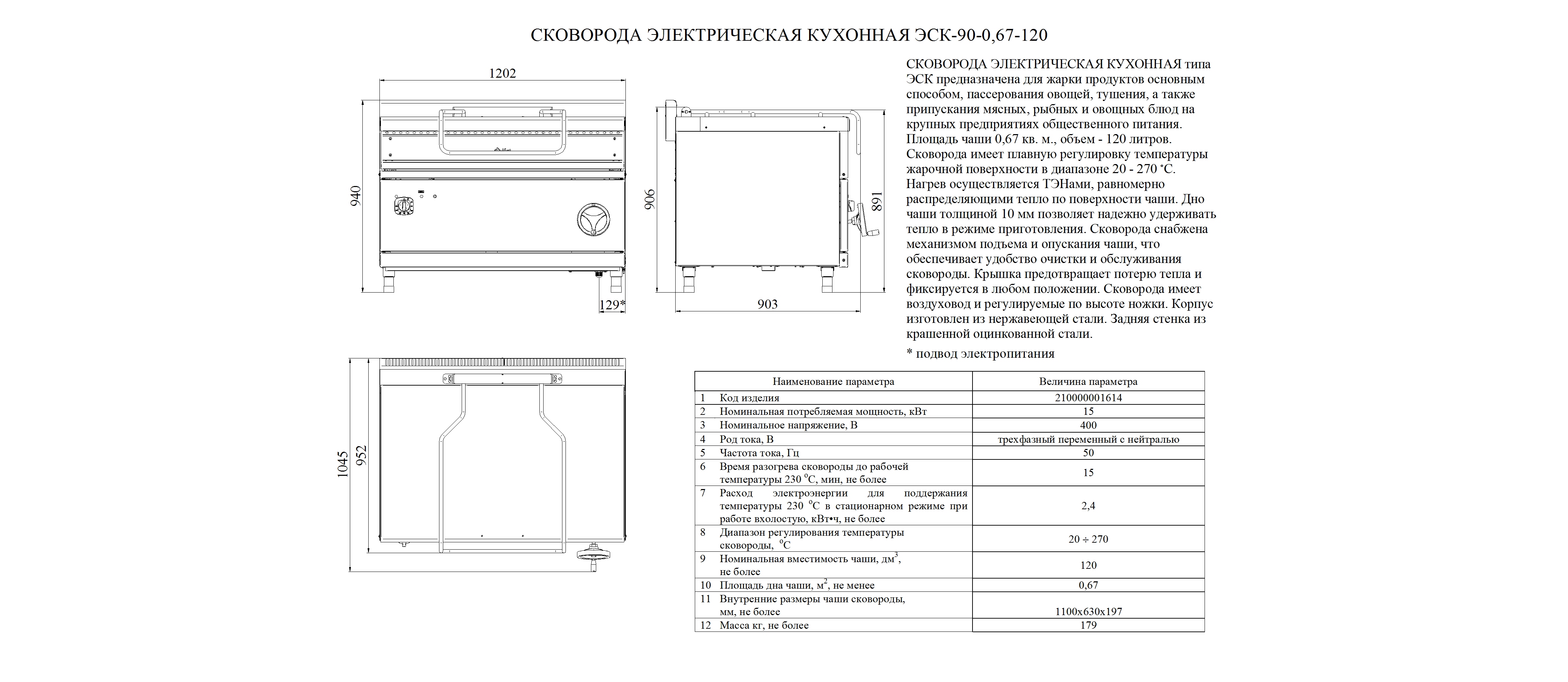 Сковорода электрическая универсальная кухонная типа ЭСК предназначена для жарки