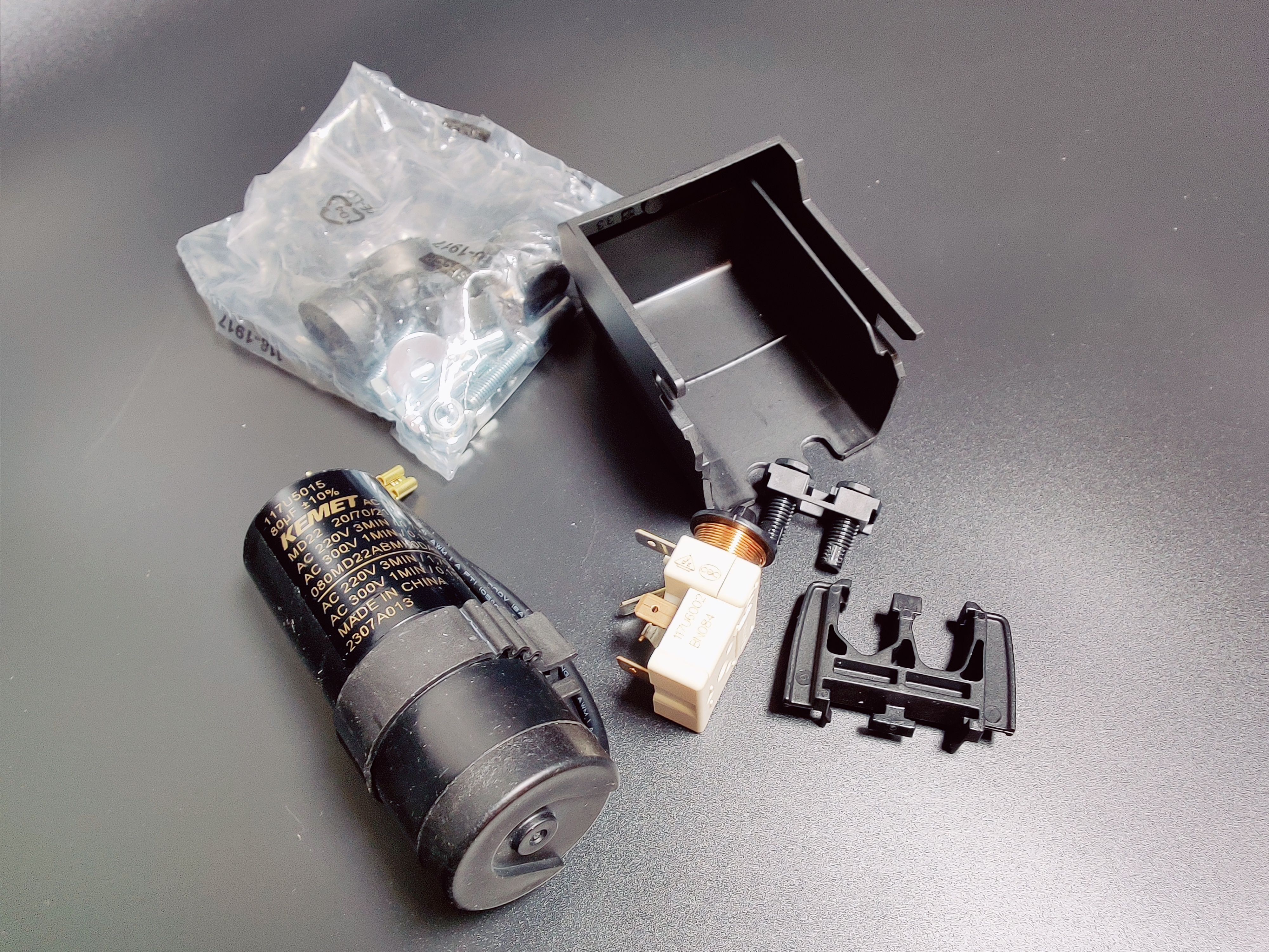 В комплект поставки входит - компрессор, пусковое реле, пусковой конденсатор, крышка, разветвитель проводов, монтажный комплект. |