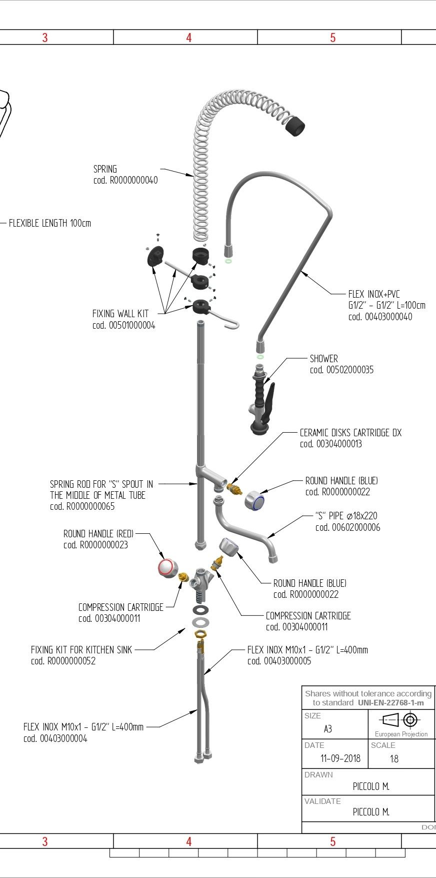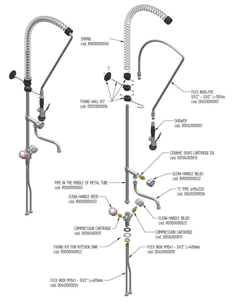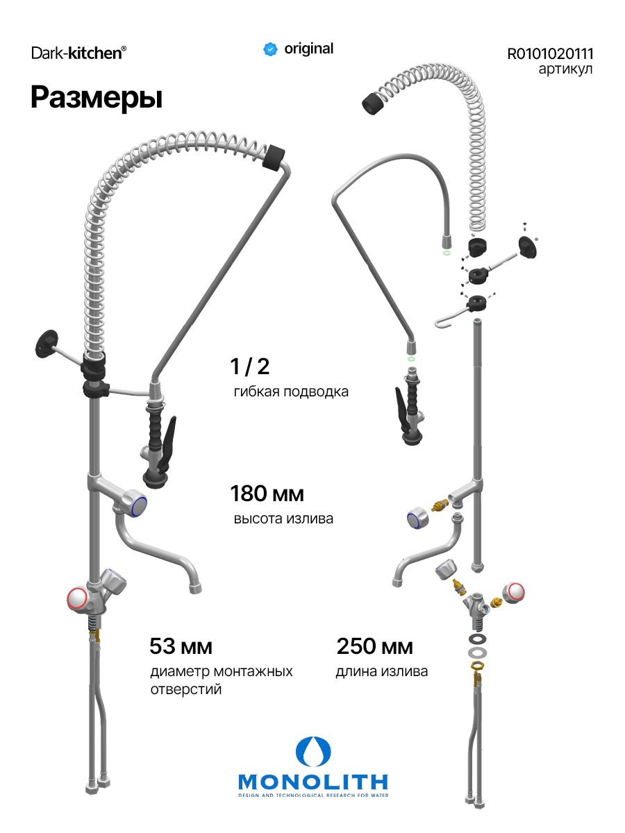 Душирующее устройство код R0101020111 предназначено для обработки посуды и удаления остатков пищи, а также для мойки овощей.