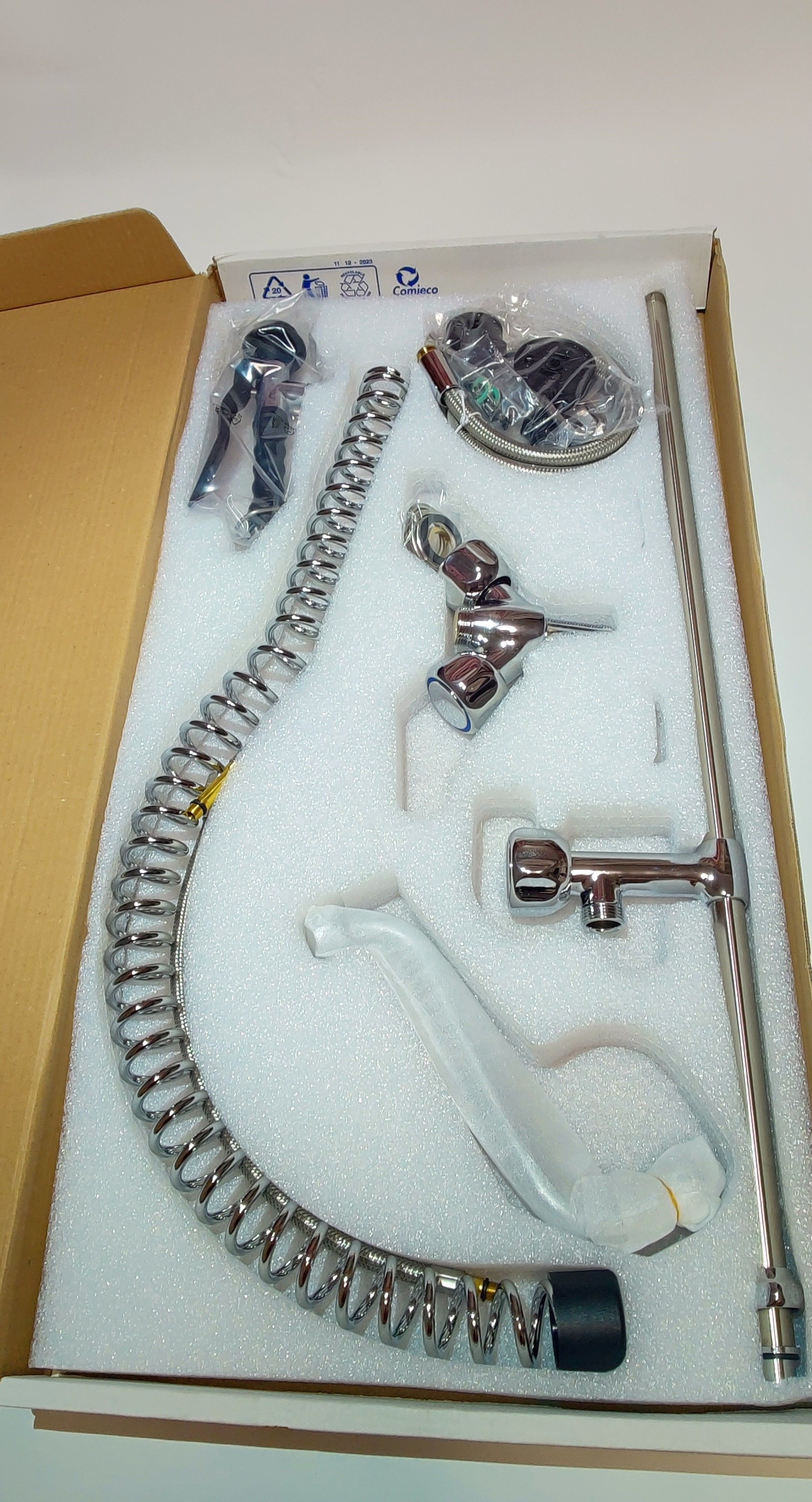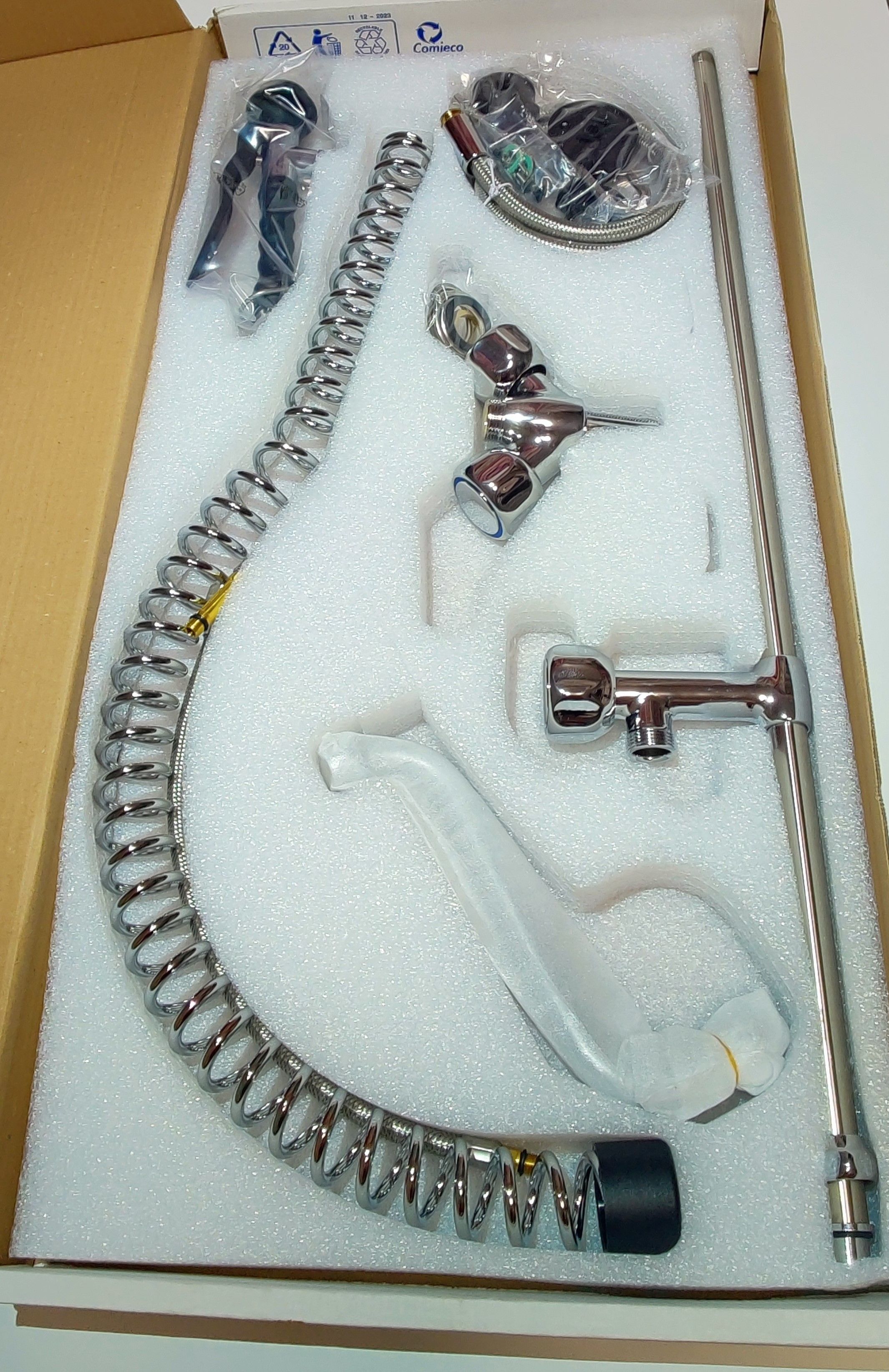 Комплектация - душ, шланг с двумя гайками G 1/2’’ (дюйма), держатель душа.