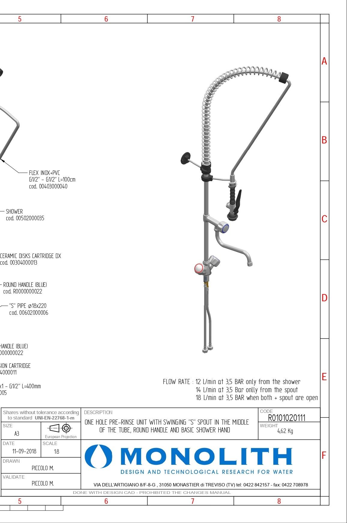 Душирующее устройство с гибким изливом MONOLITH Италия Код R 0101020111 |