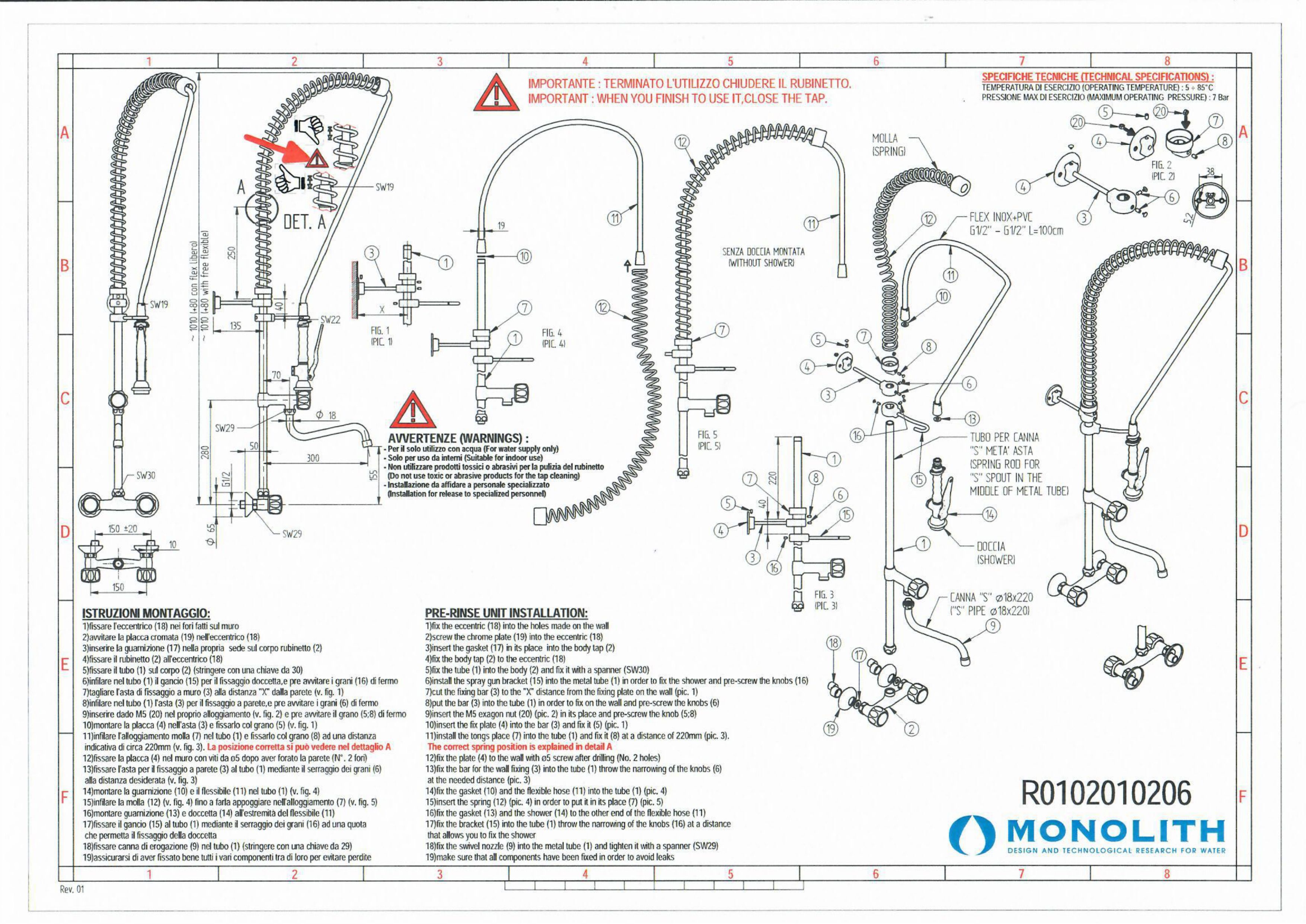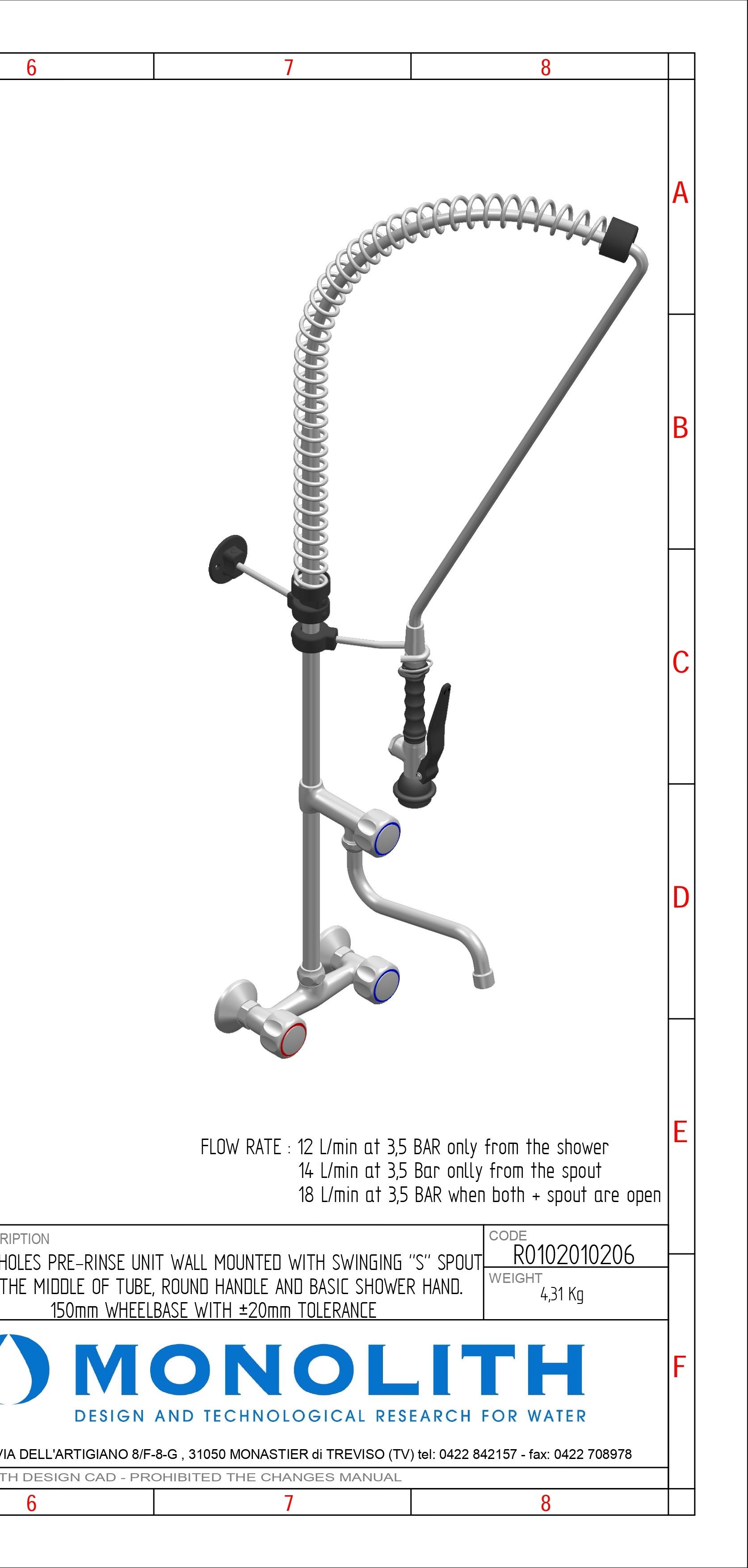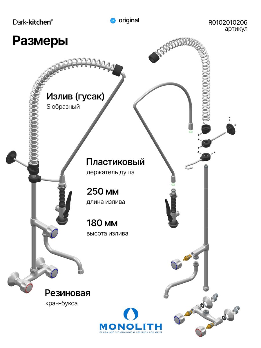Душирующее устройство с гибким изливом и краном Код R 0102010206 MONOLITH Италия |