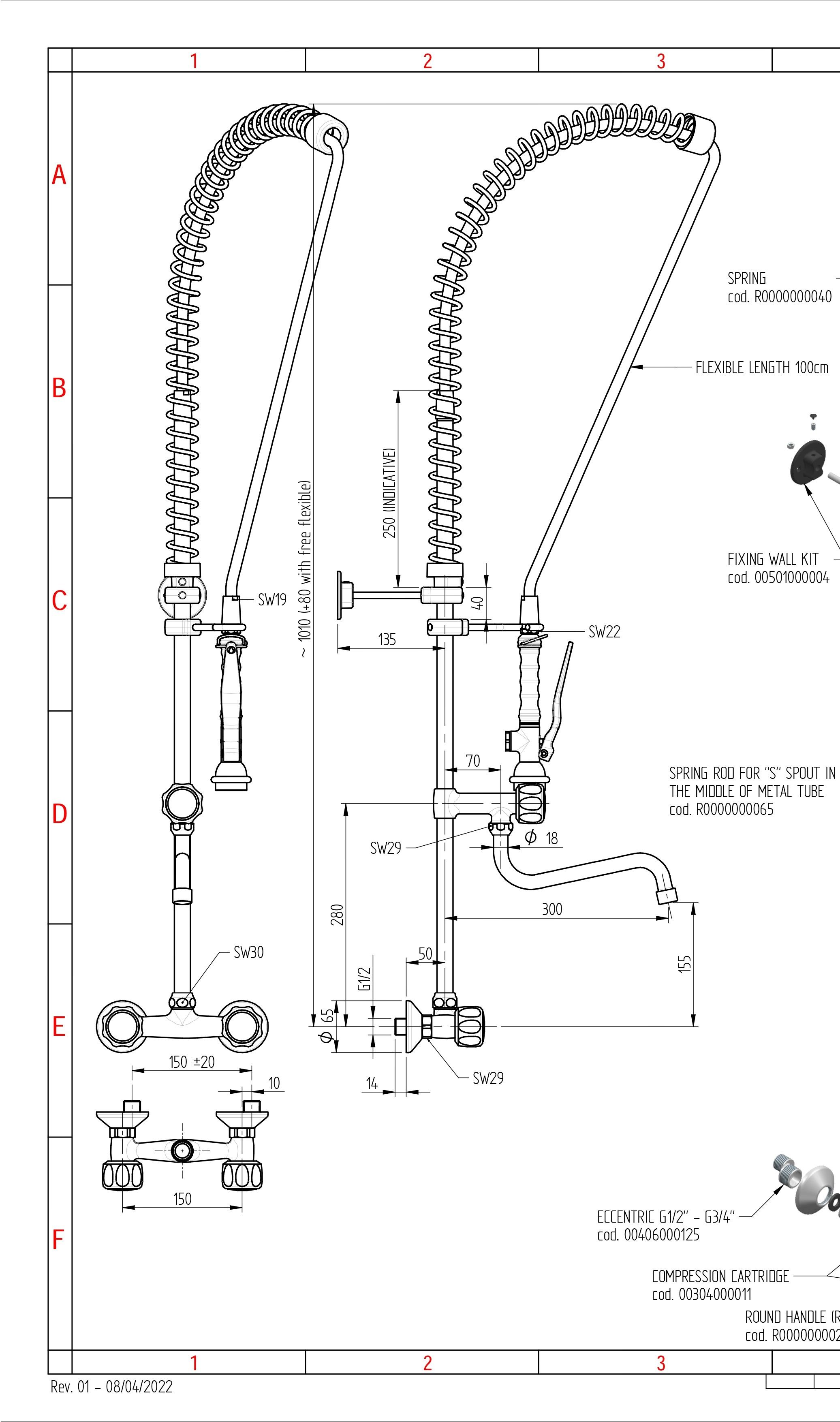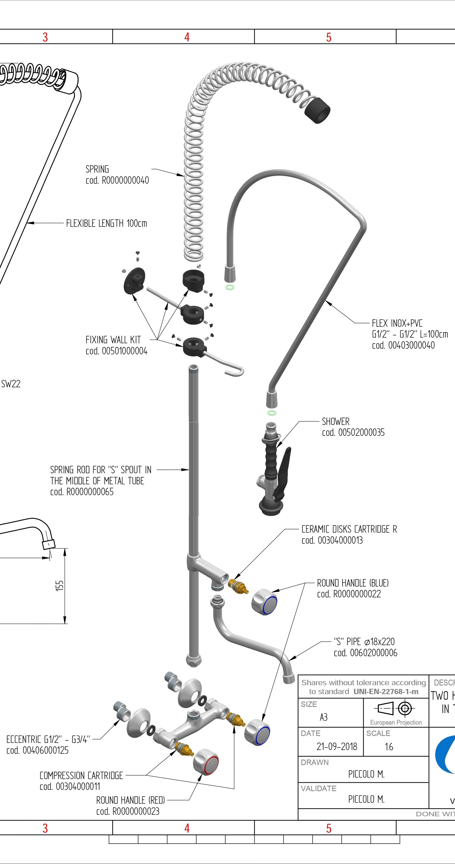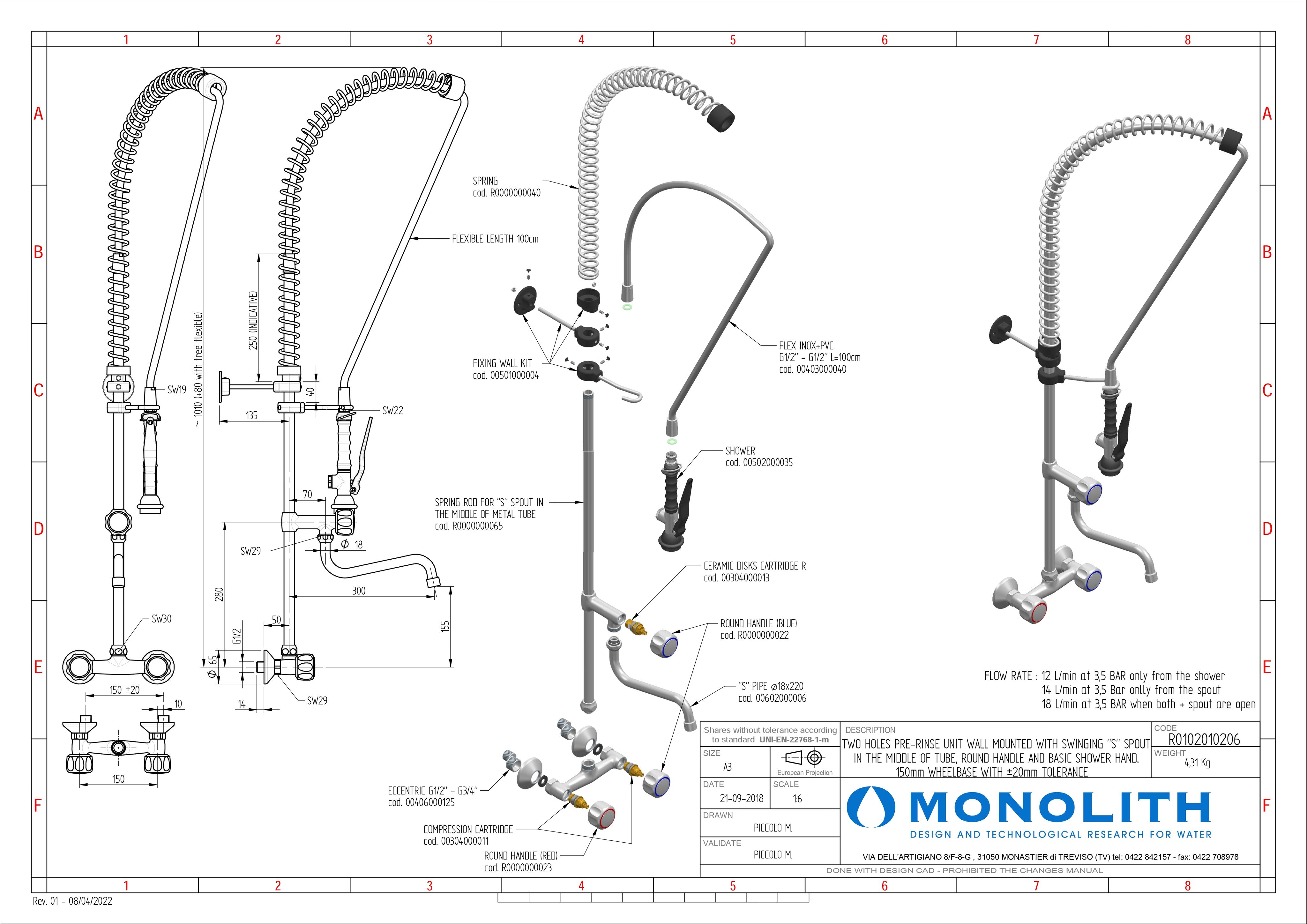 Душирующее устройство с гибким изливом и краном Код R 0102010206 MONOLITH Италия |