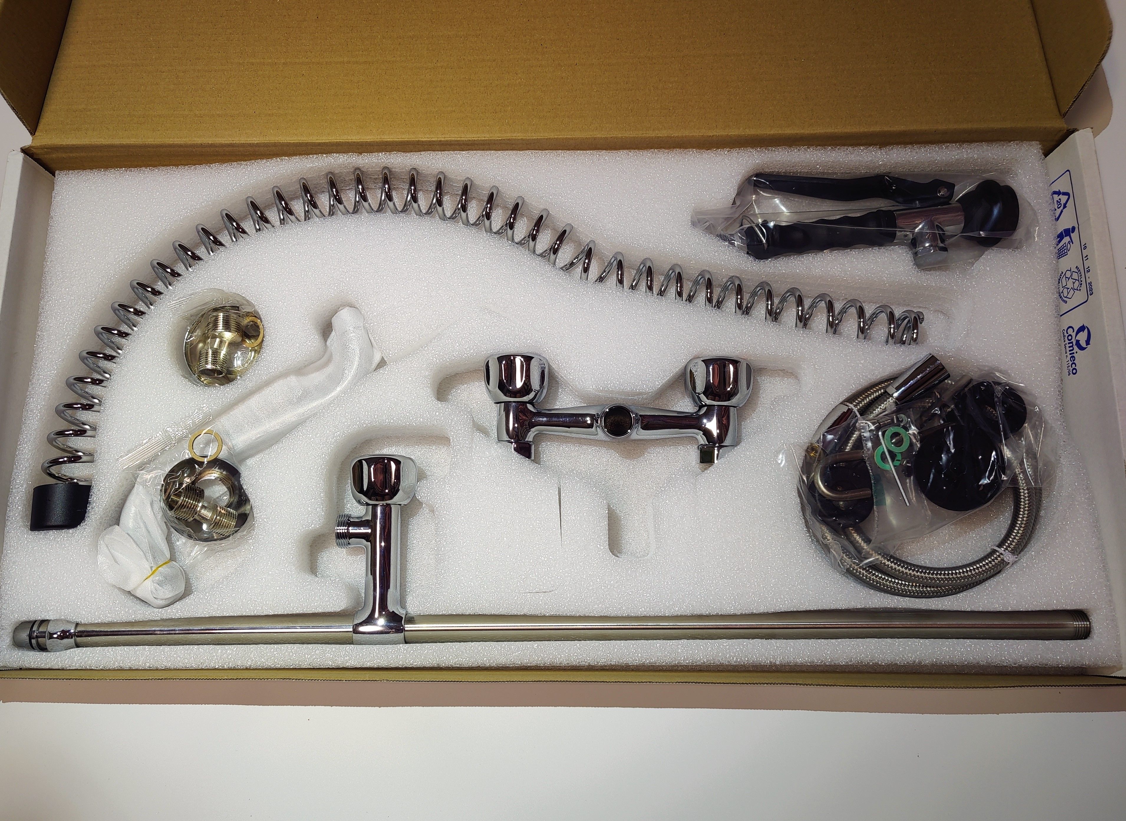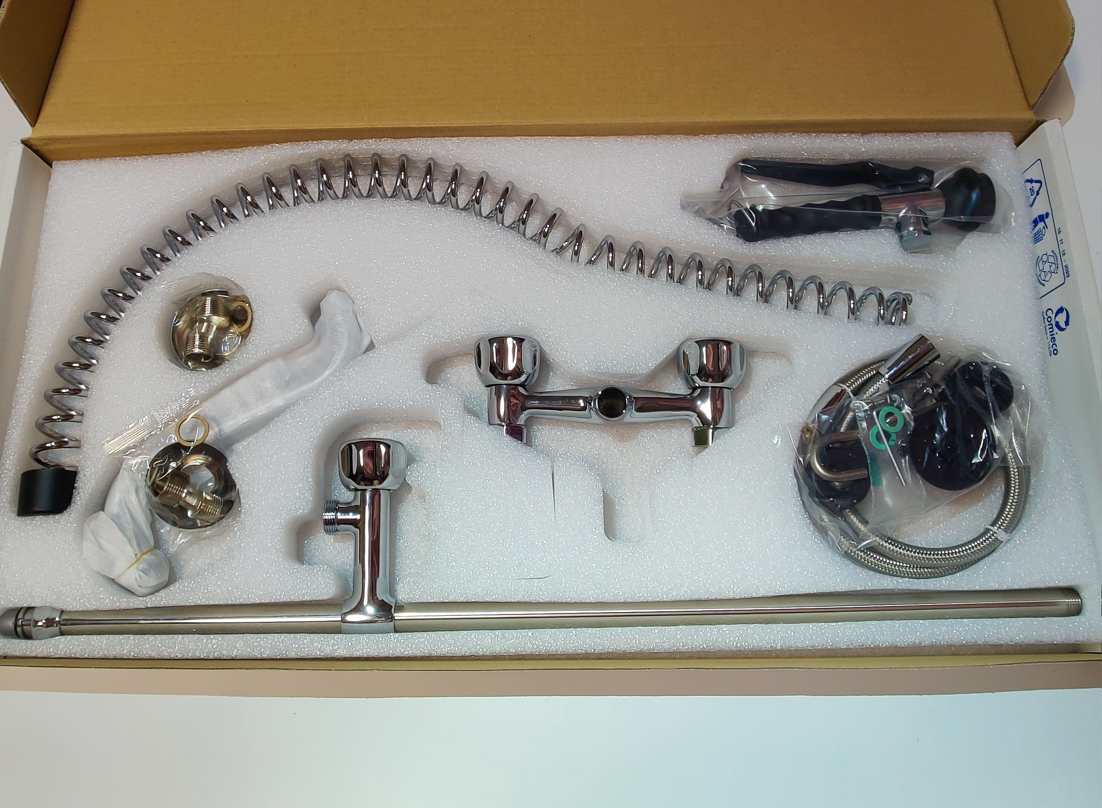 В комплект поставки входит - Излив 1шт., гибкая подводка 1шт., душирующее устройство 1шт. |