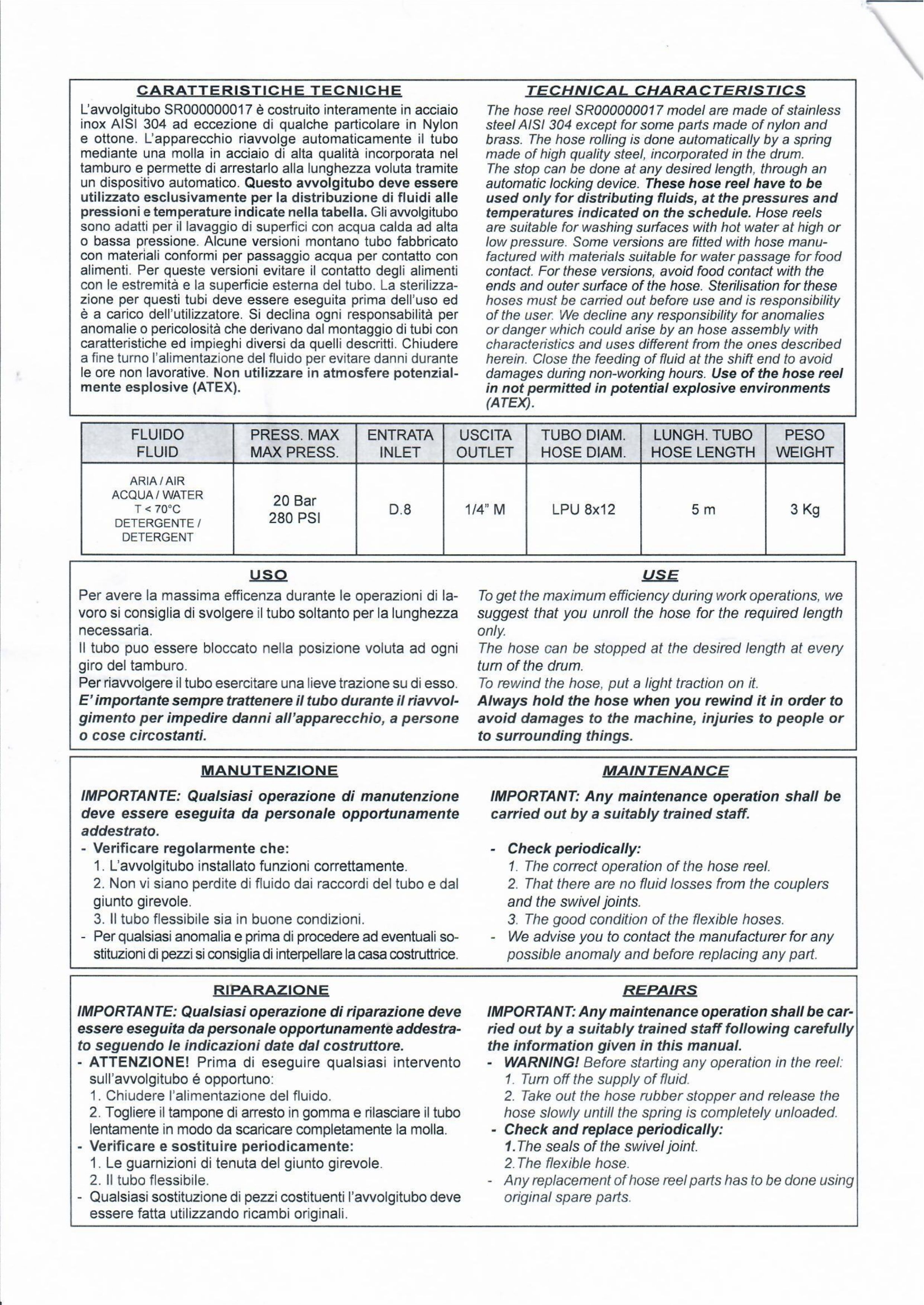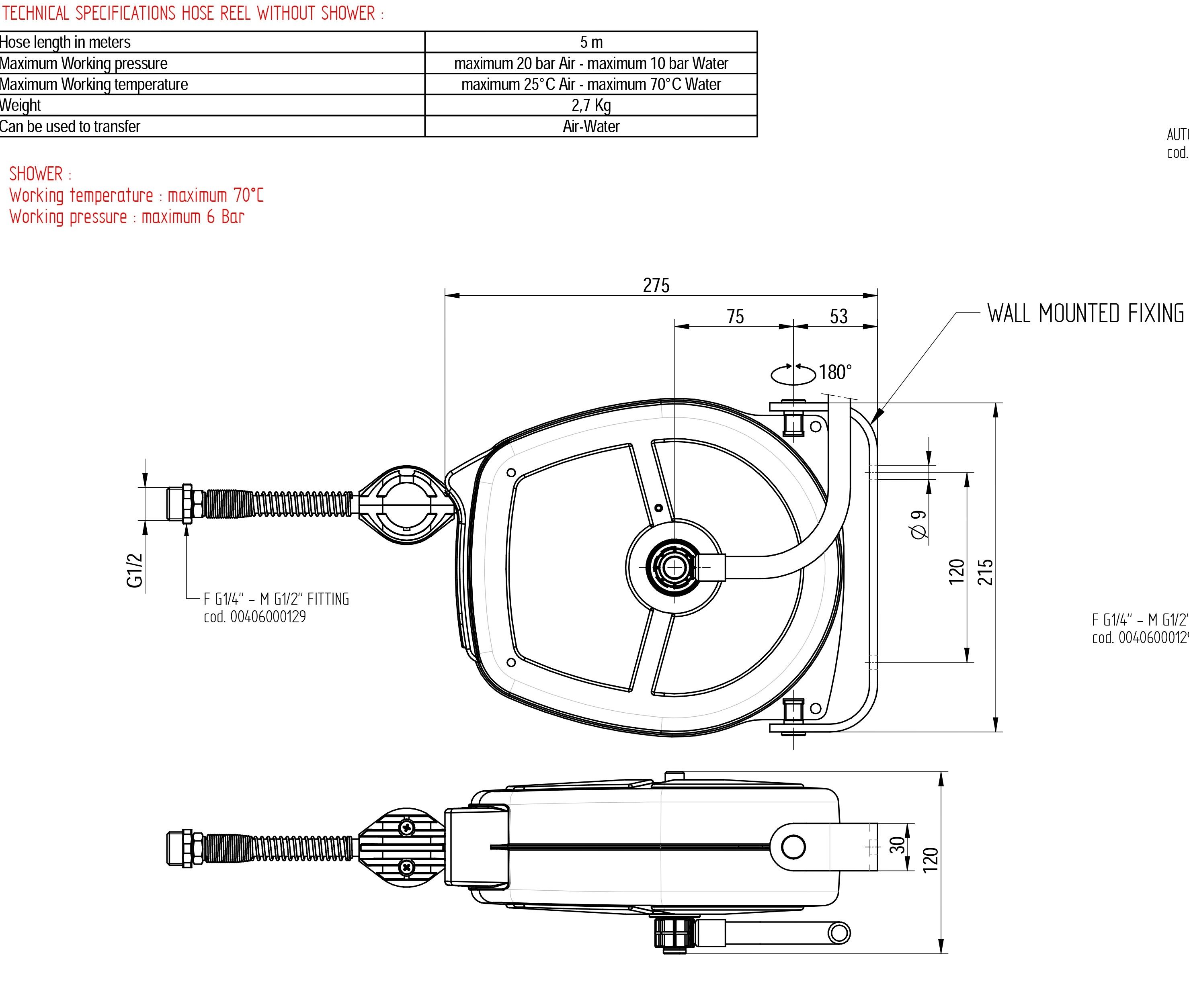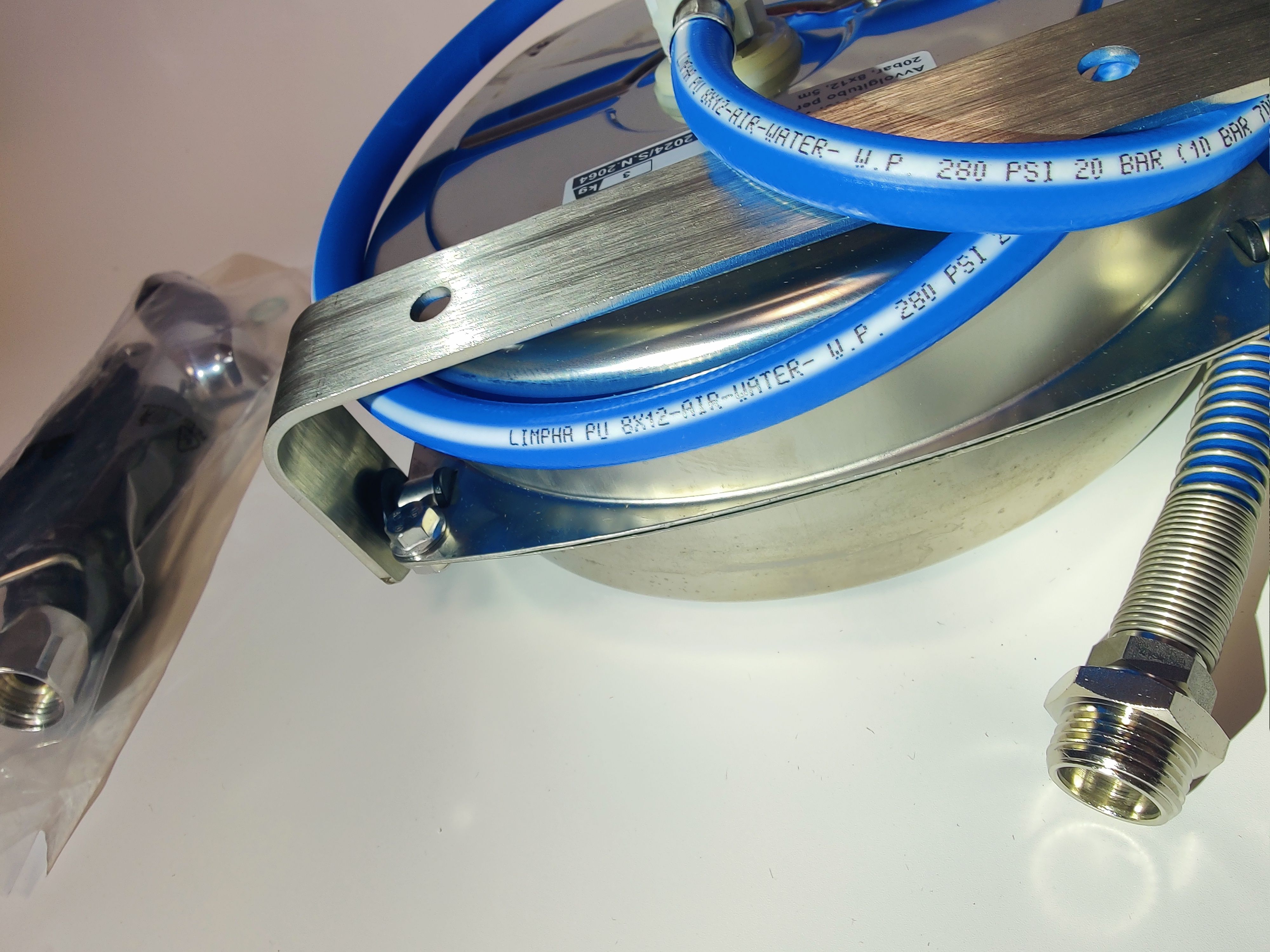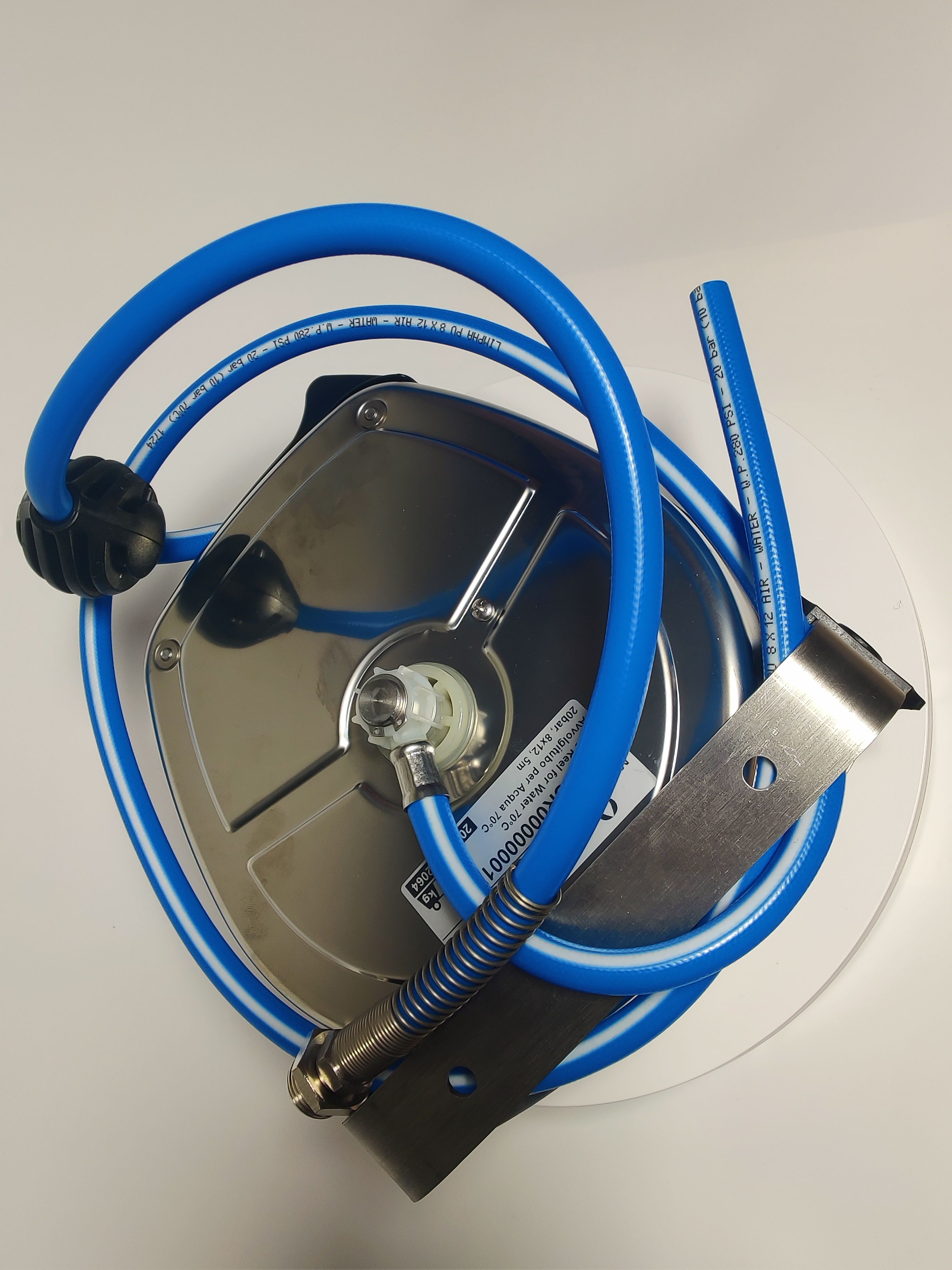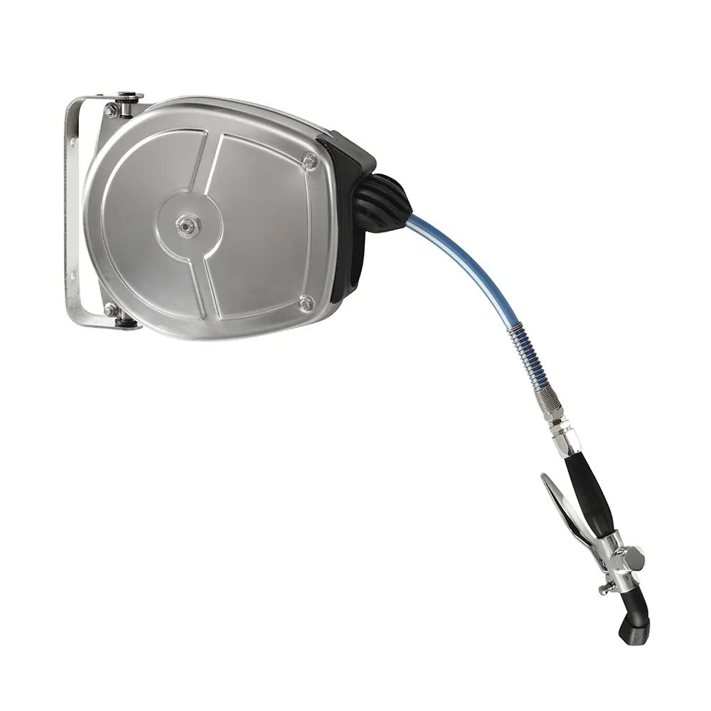 Катушка оснащена шлангом длиной 5 метров, позволяющим удобно маневрировать и достигать различных участков помещения.