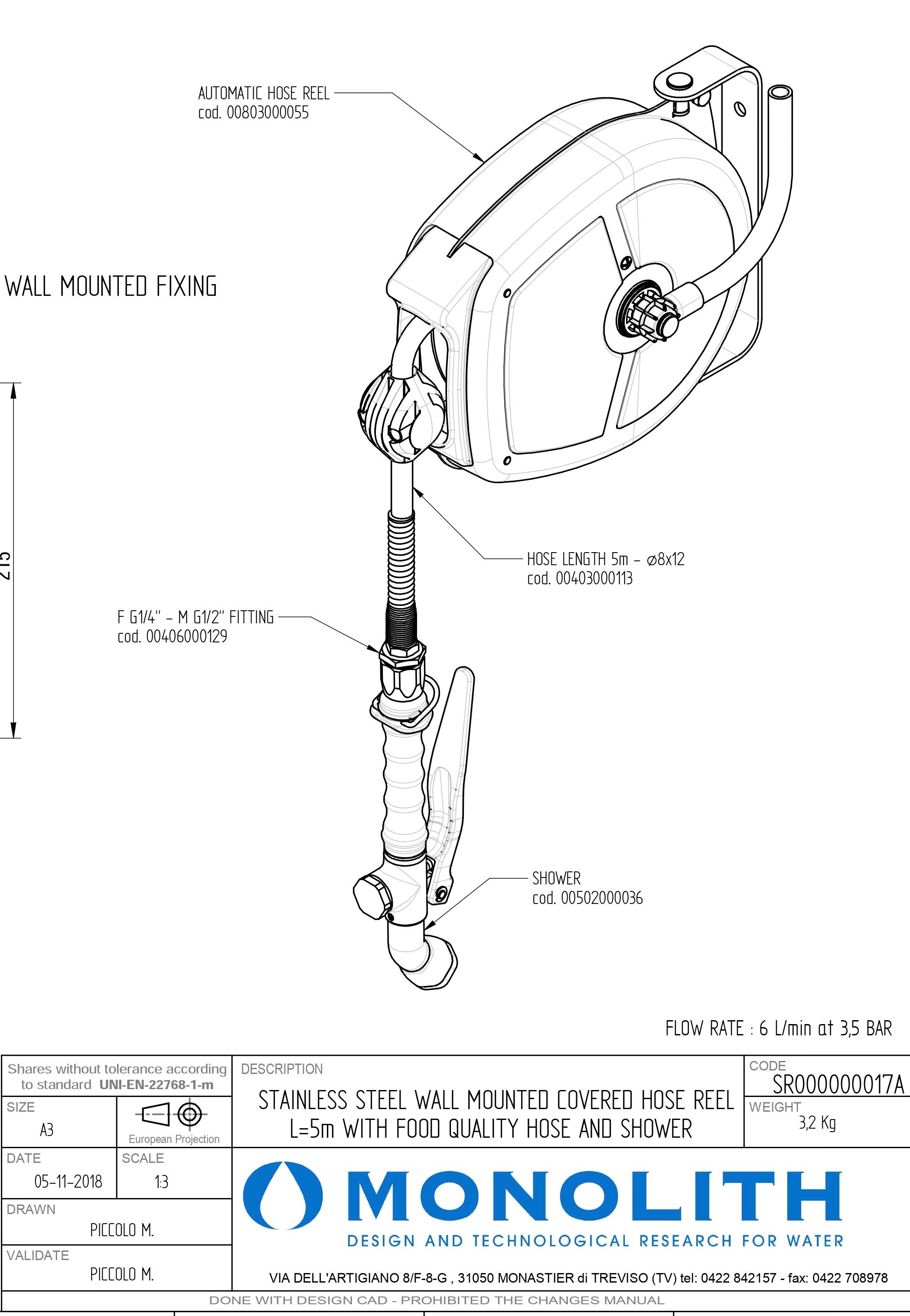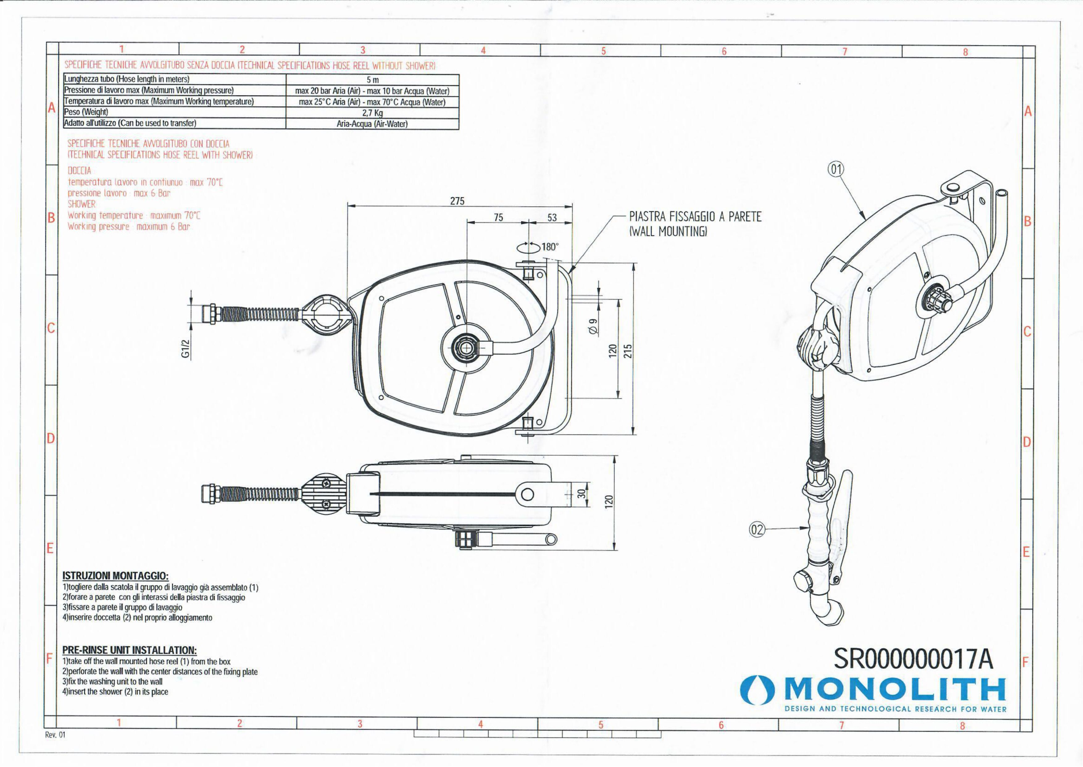 Душ выдвижной на катушке (настенный) SR 000000017A MONOLITH (шланг 5м) |