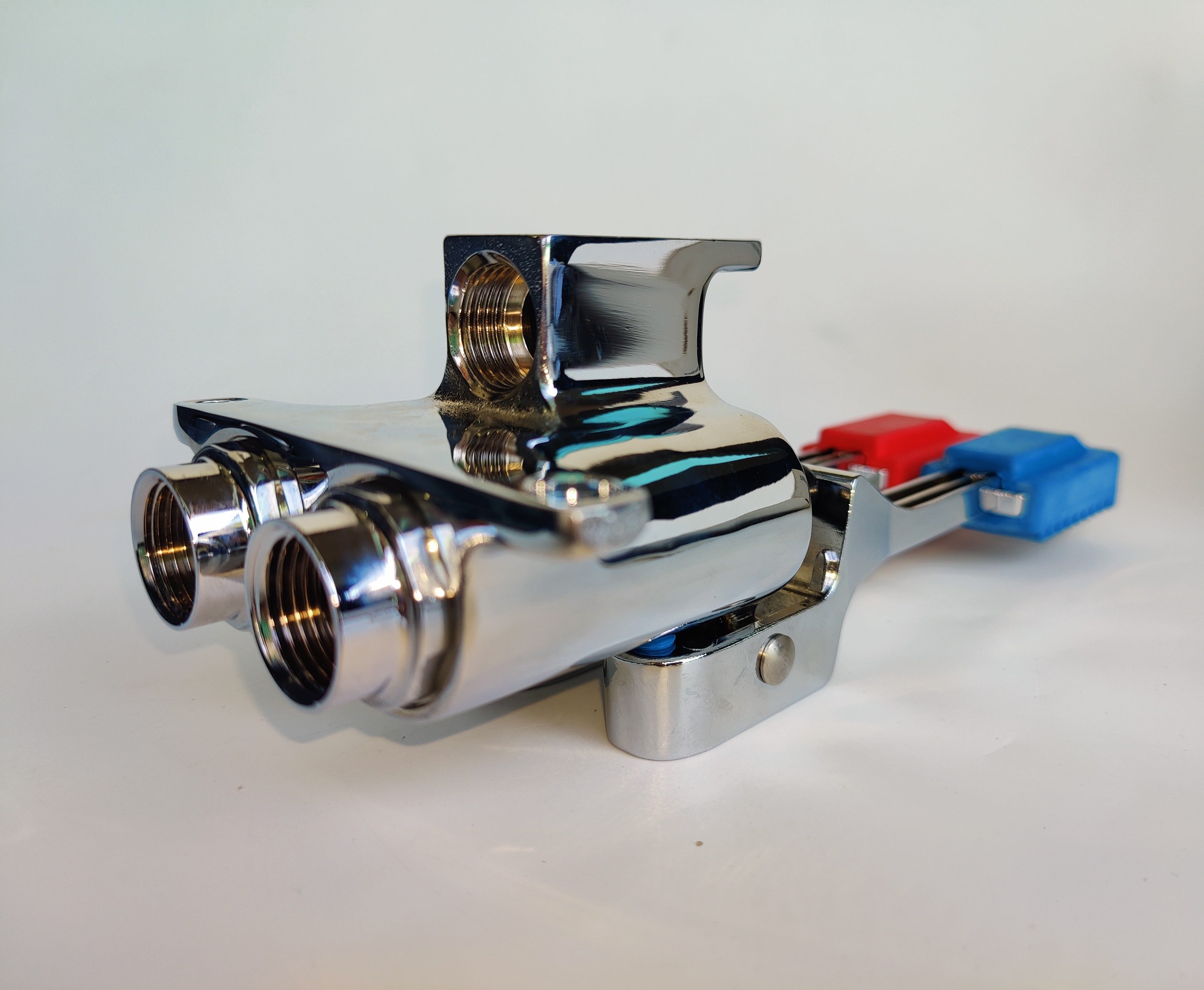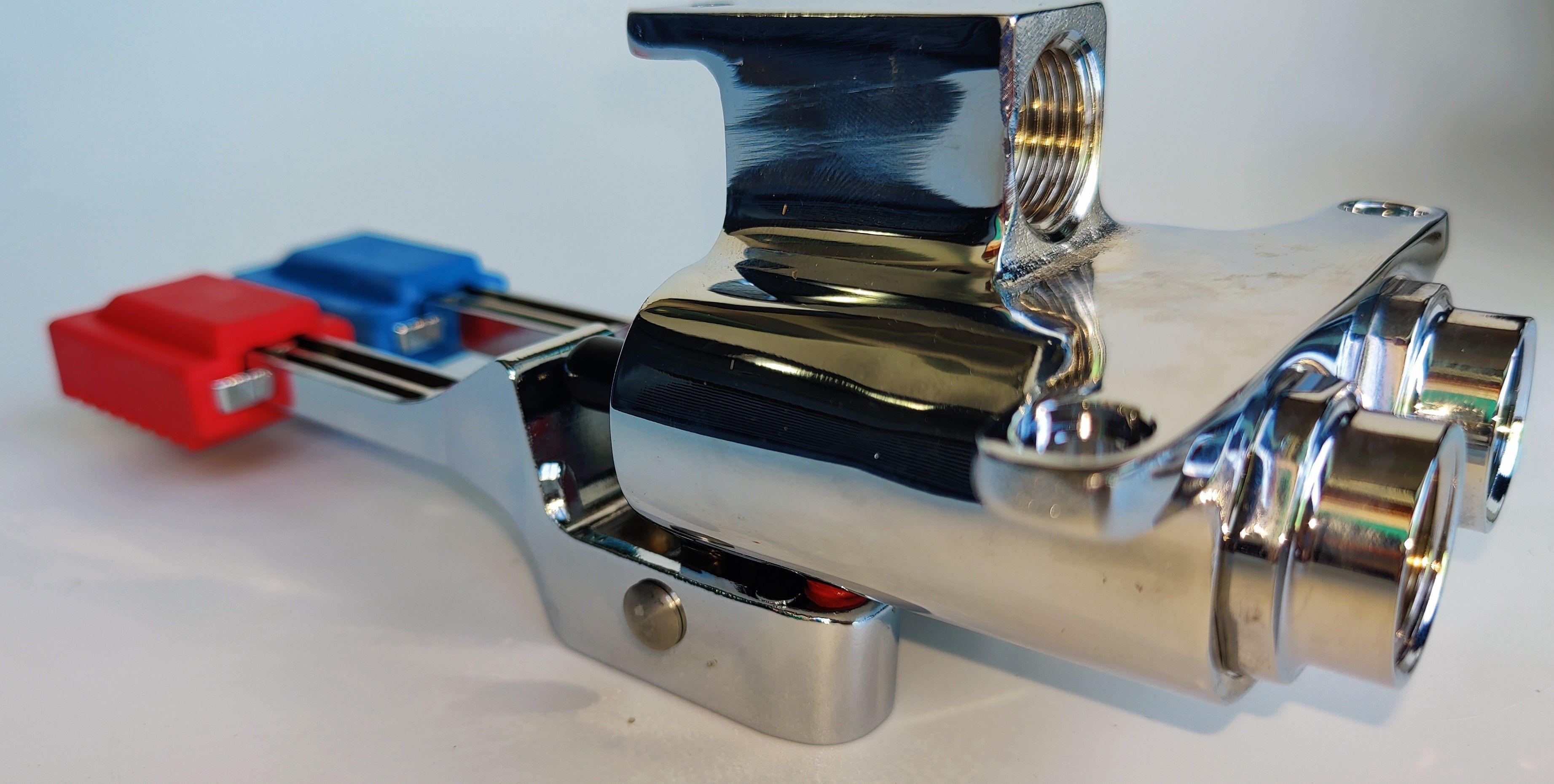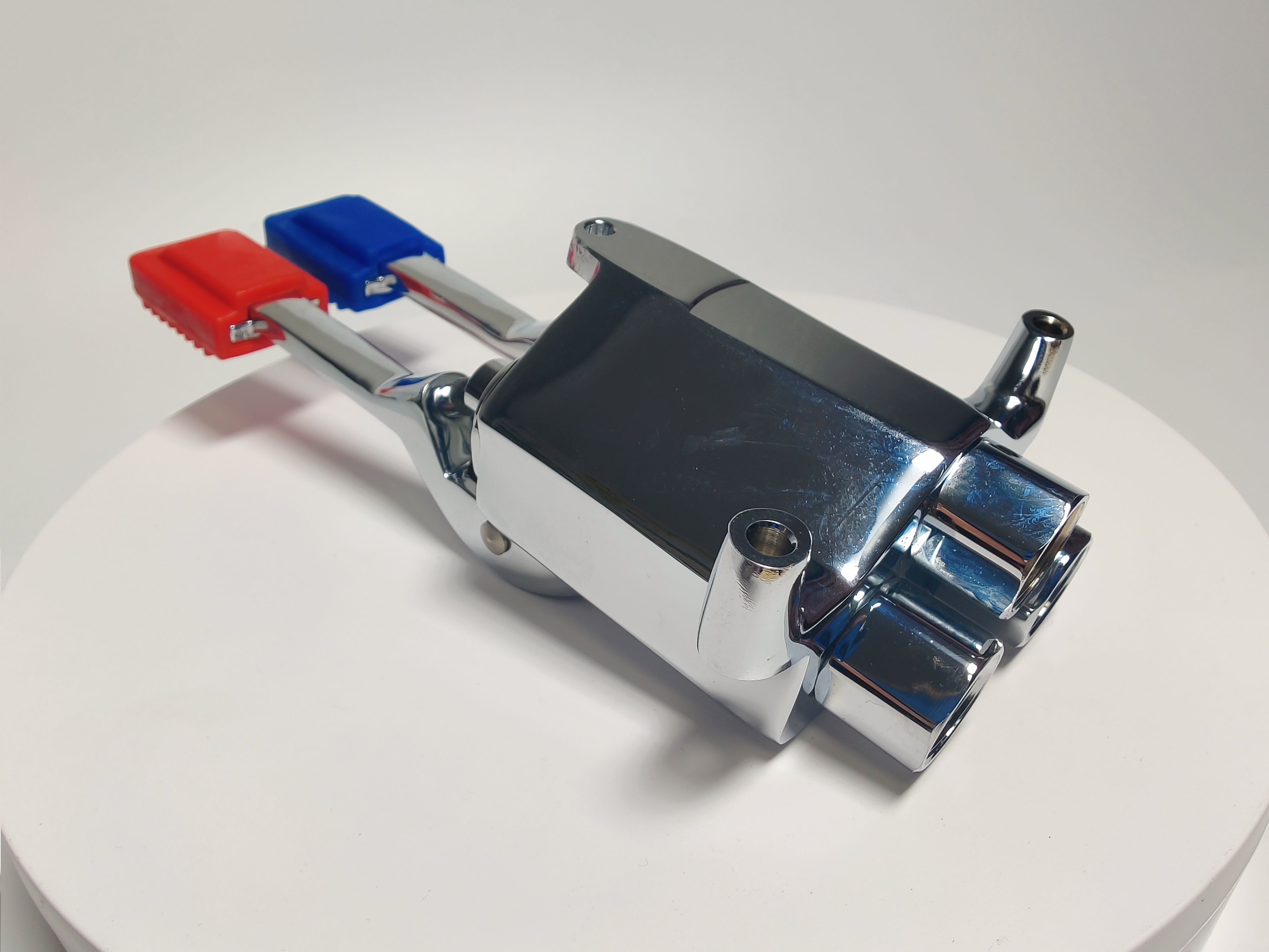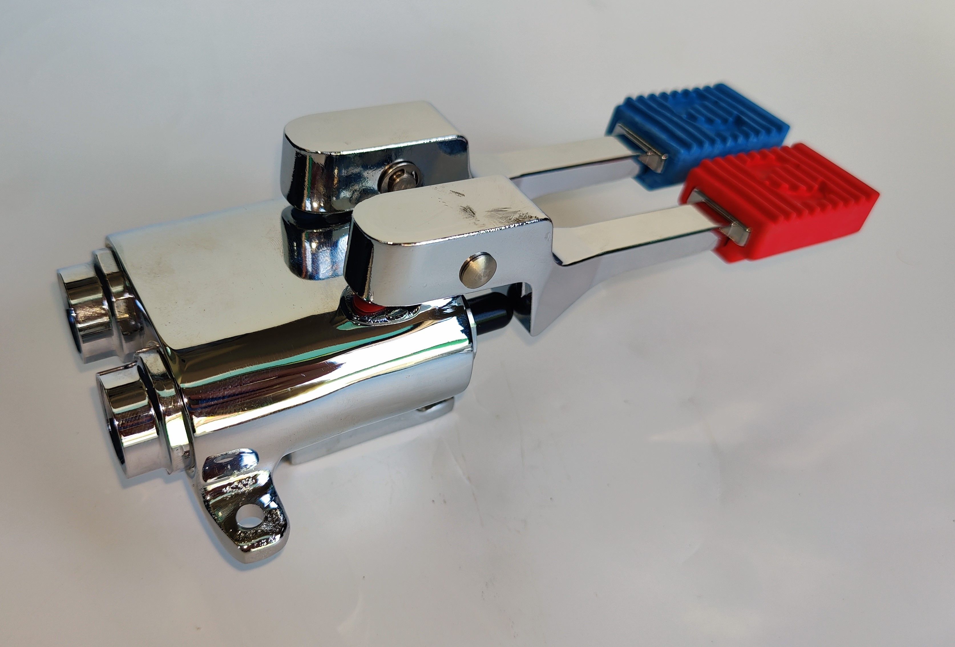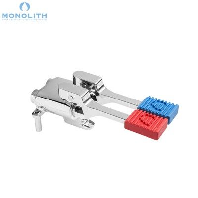 Педальный смеситель MONOLITH ERMES003 представляет собой монолитный педальный смеситель из высококачественной хромированной латуни с двумя педалями для холодной и горячей воды,