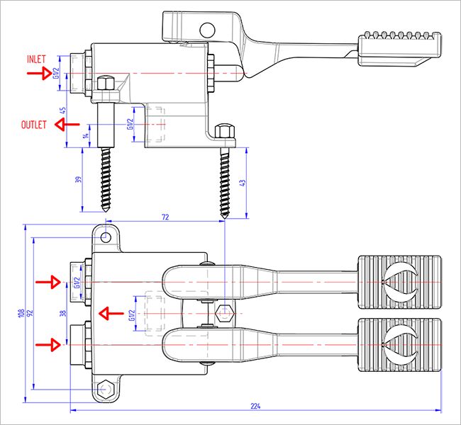 напольным монтажом и ножным управлением за счет нажатия ногой на педали.