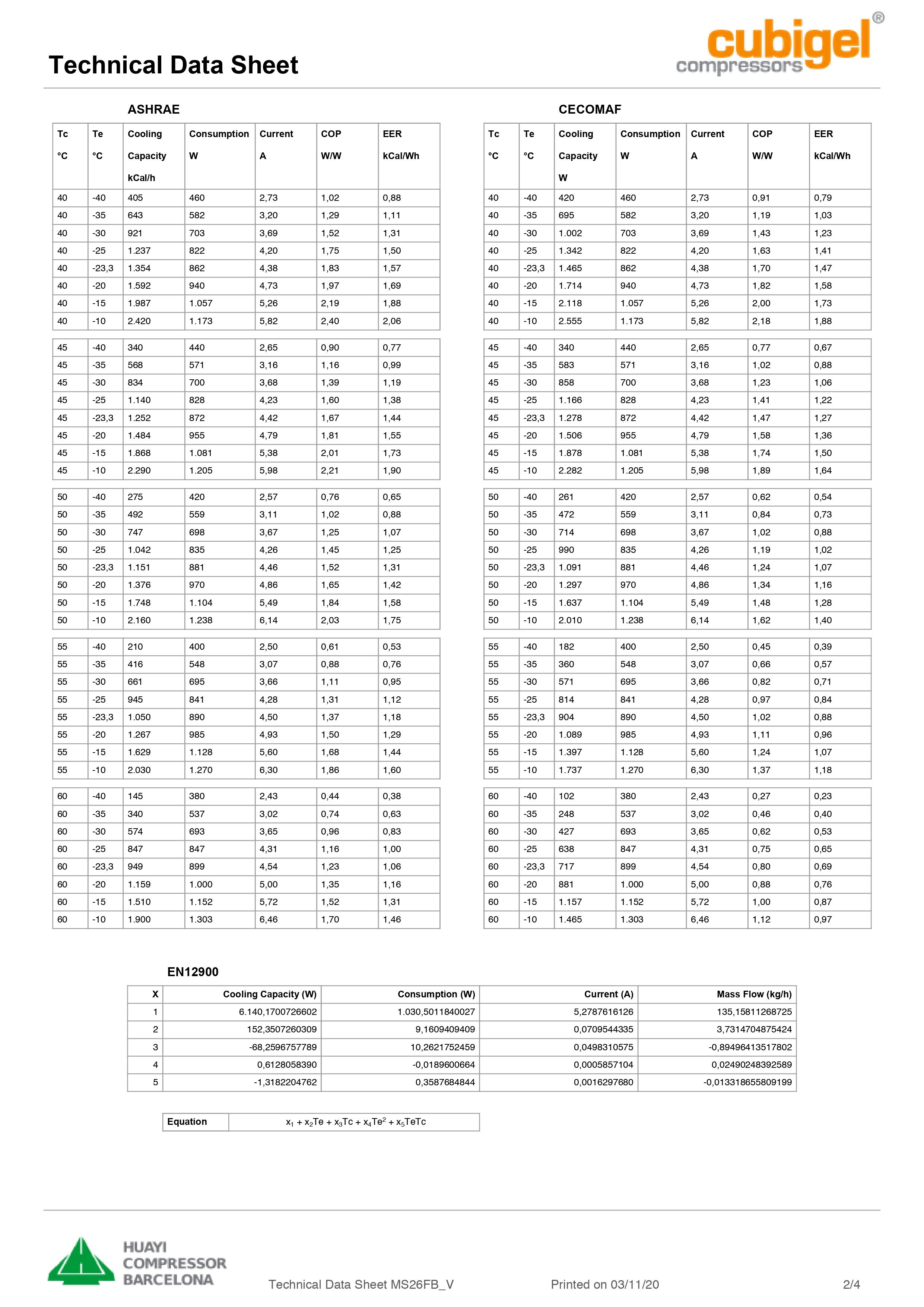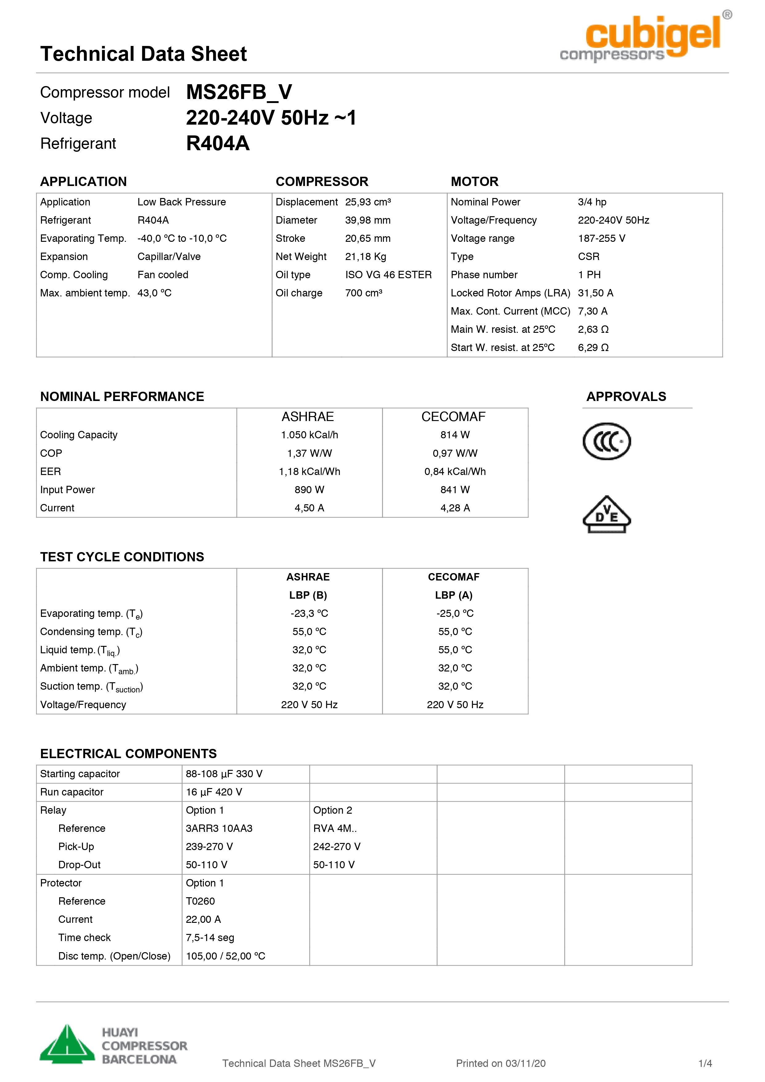 Применяемый хладагент R404A, рабочий объем цилиндра 25,93 см3.