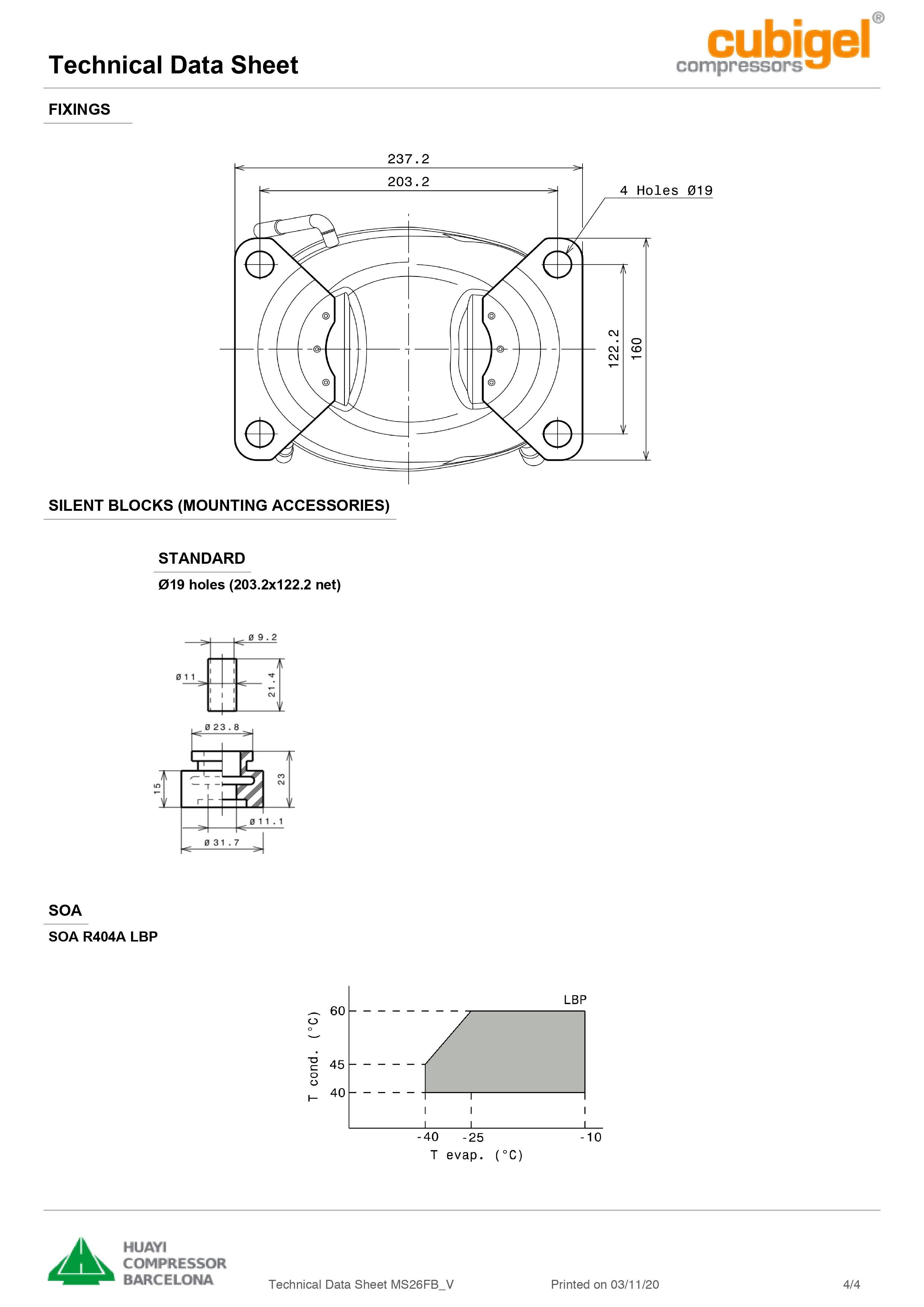 Компрессор MS 26 FB R-404A Cubigel 695Вт |