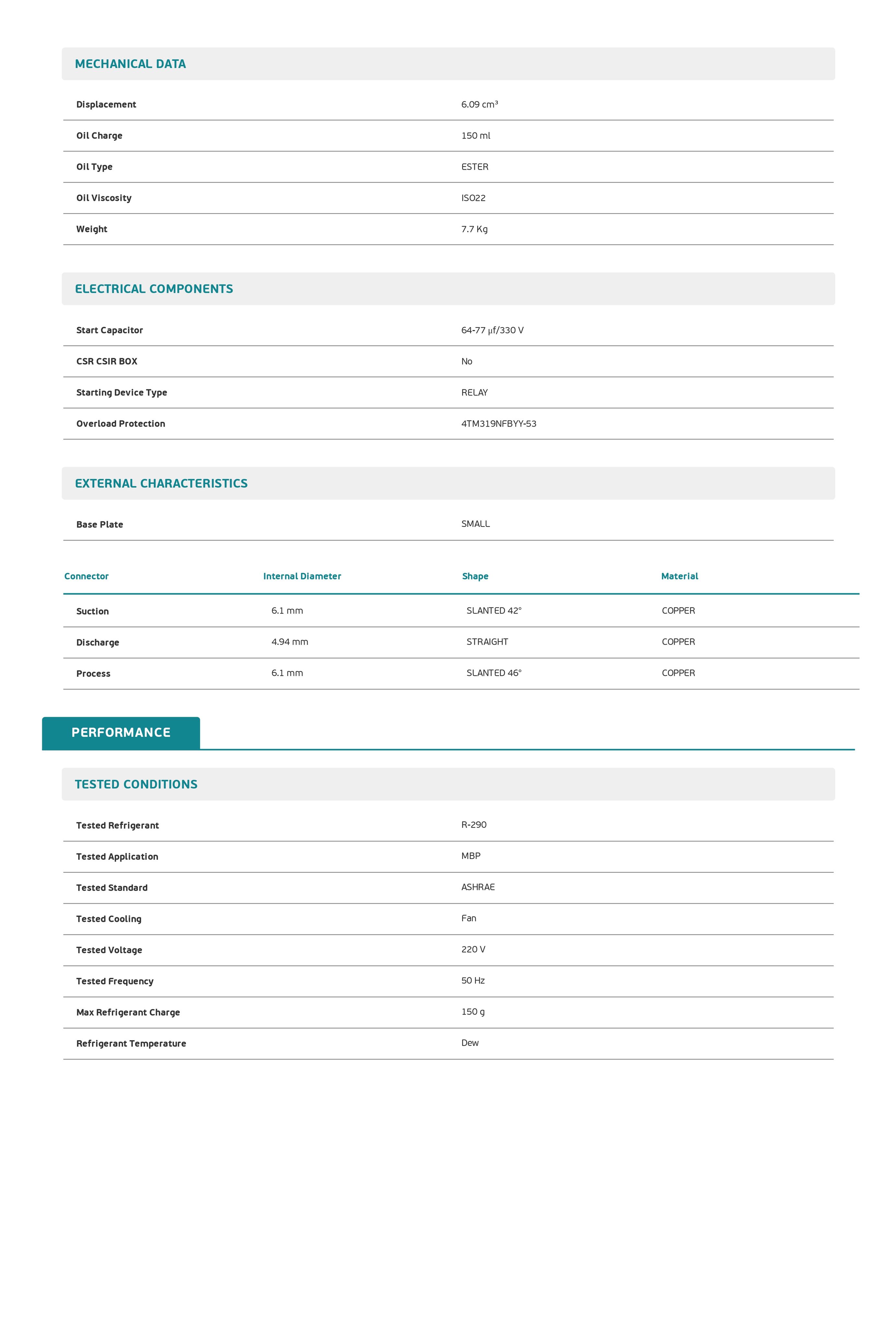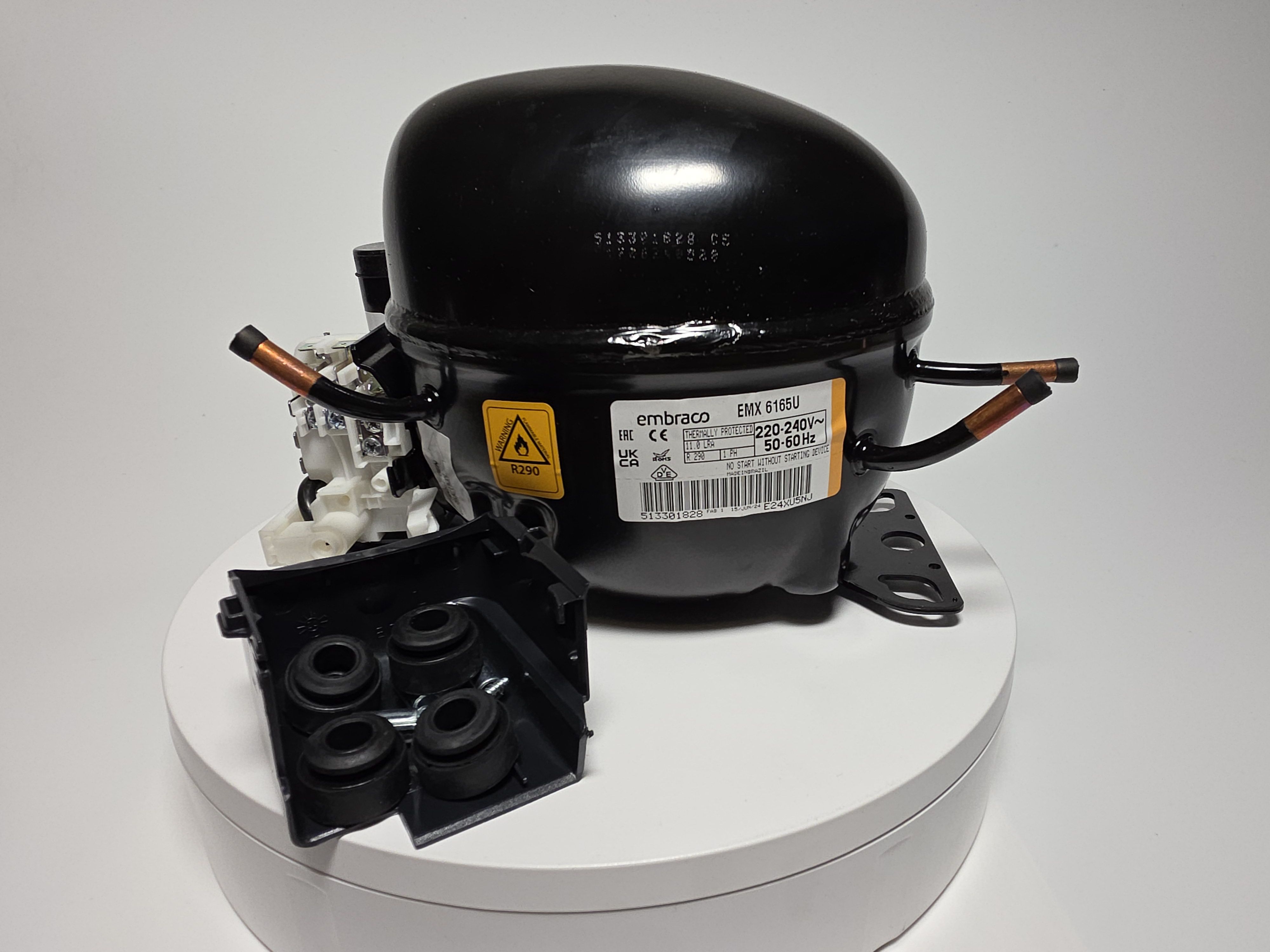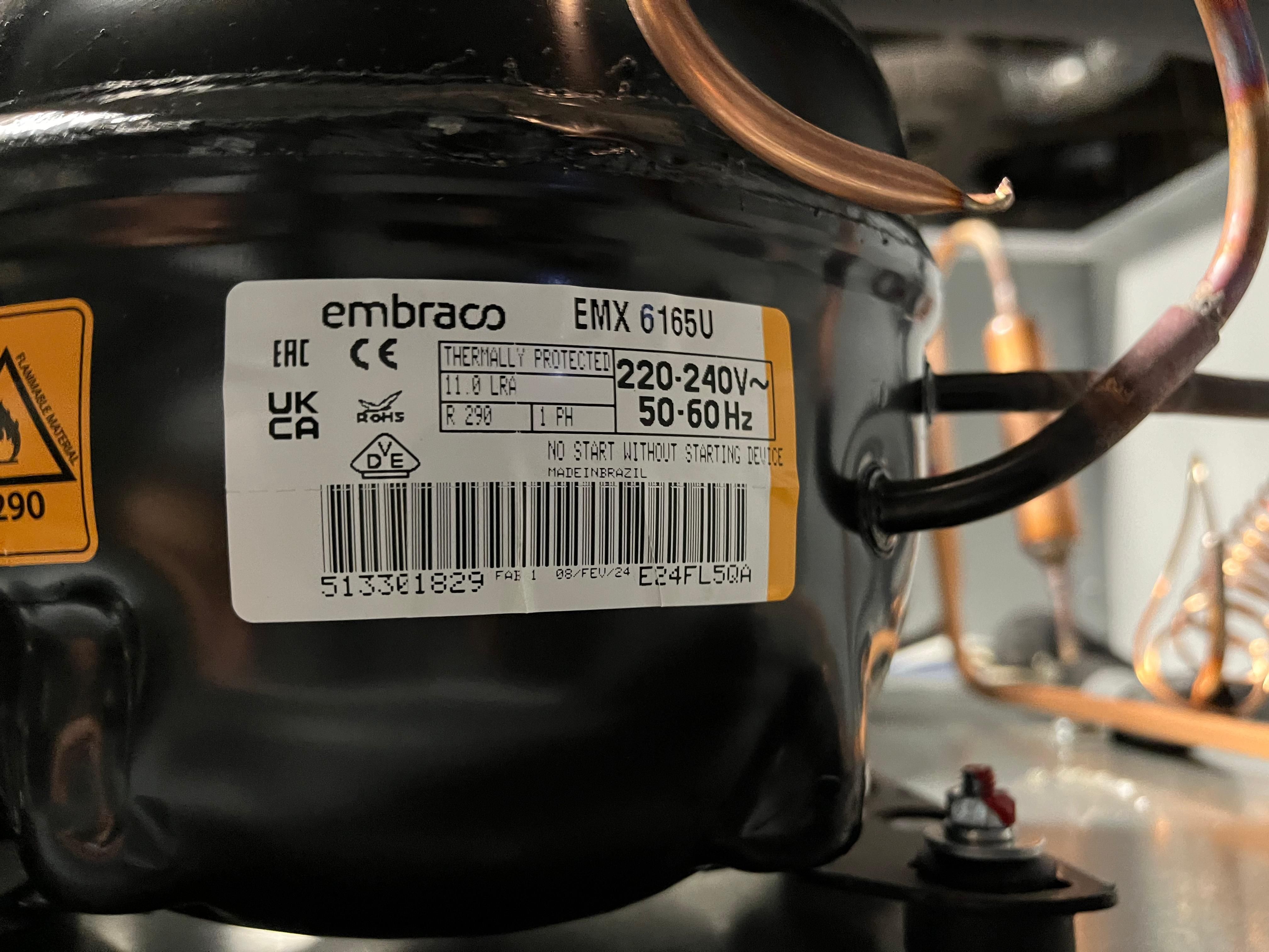 Embraco Aspera EMX6165U - герметичный поршневой среднетемпературный компрессор, применяемый хладагент R-290.
