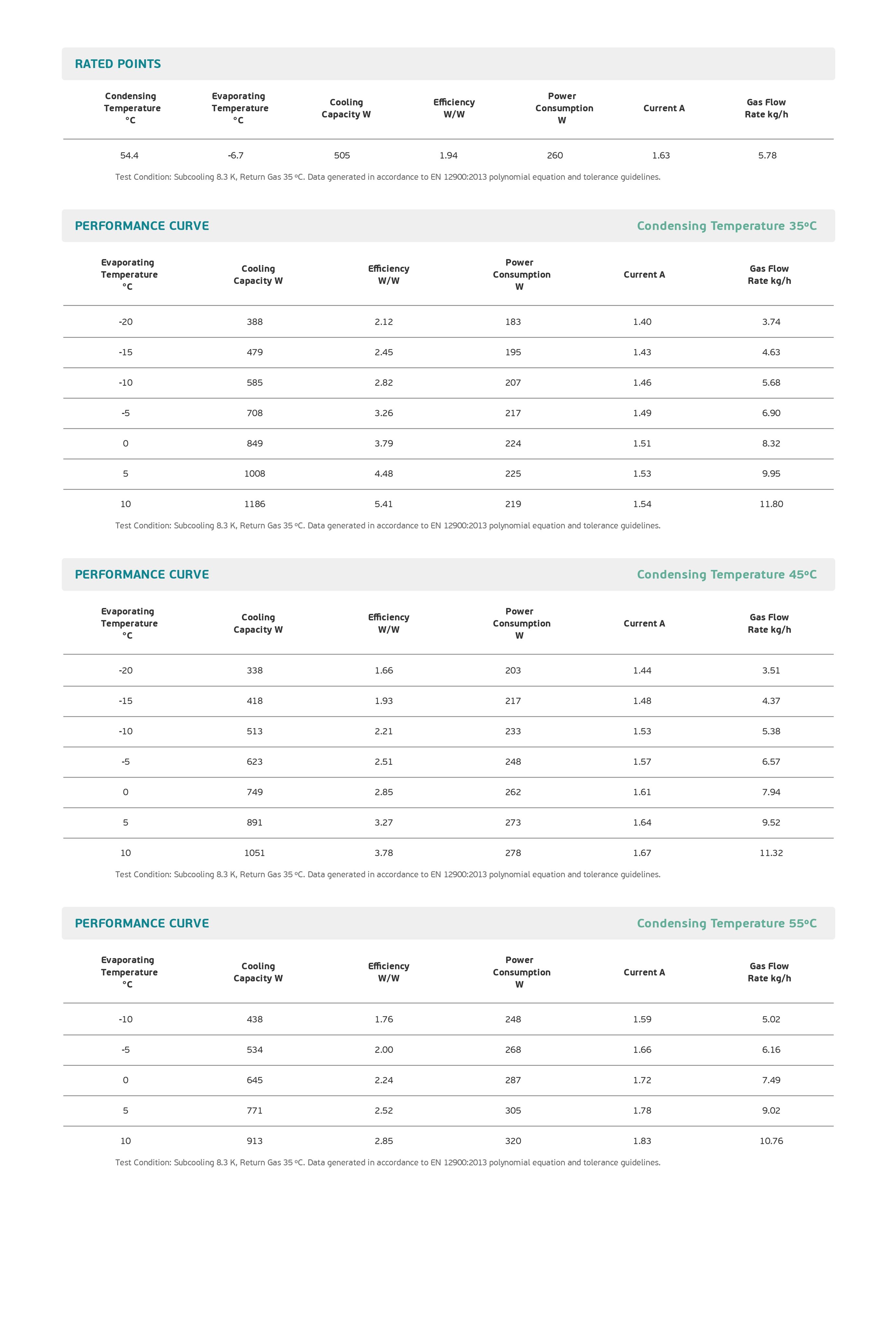 Холодопроизводительность ASHRAE (Ткип.= -6,7°C Тконд.= 54,4°C) - 511 Вт