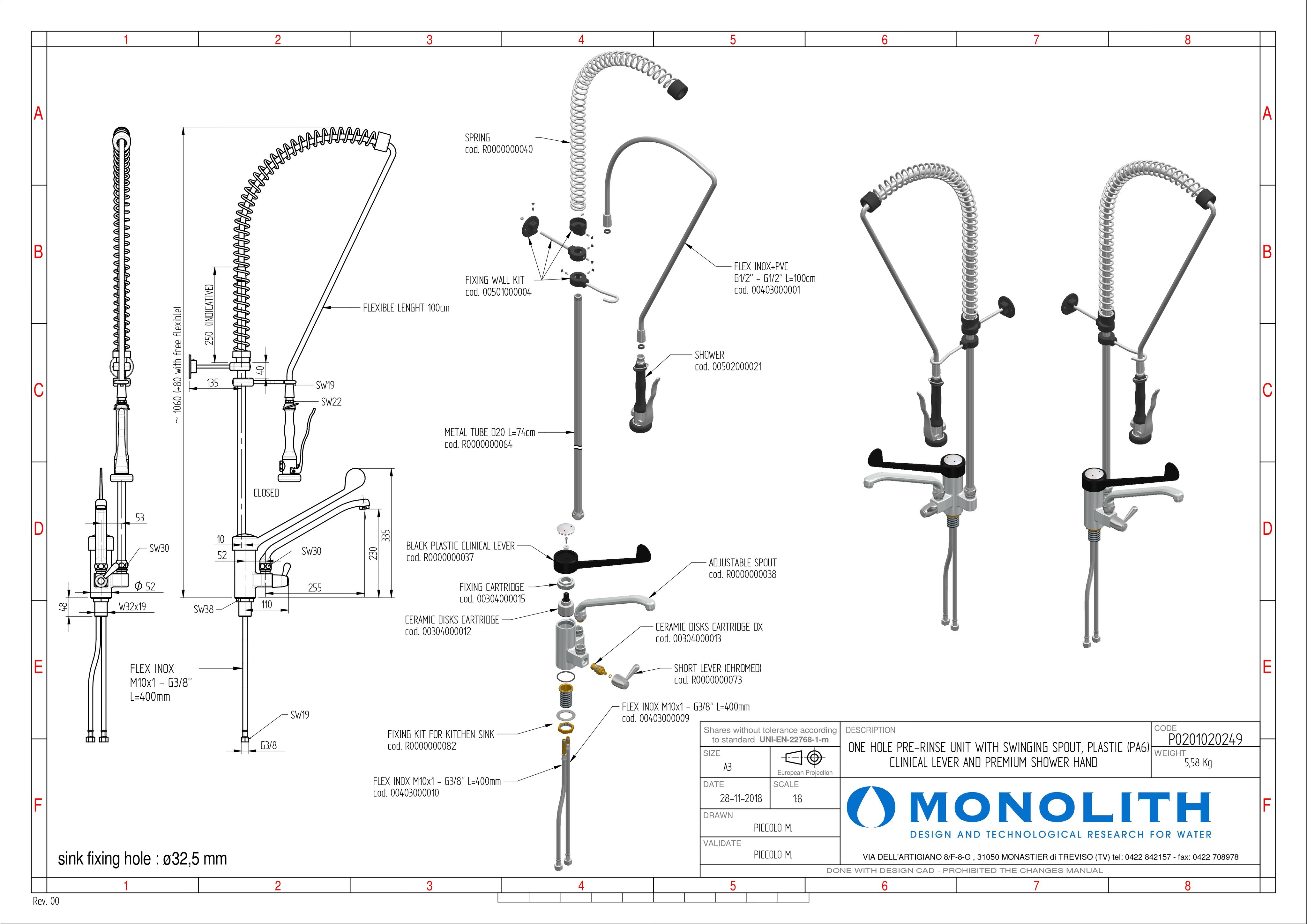 УСТРОЙСТВО ДЛЯ ПРЕДВАРИТЕЛЬНОГО ОПОЛАСКИВАНИЯ С ОДНИМ ОТВЕРСТИЕМ, ПОВОРОТНЫМ НОСИКОМ, ПЛАСТИКОВЫМ КЛИНИЧЕСКИМ РЫЧАГОМ (PA6) И ДУШЕВОЙ НАСАДКОЙ ПРЕМИУМ-КЛАССА
