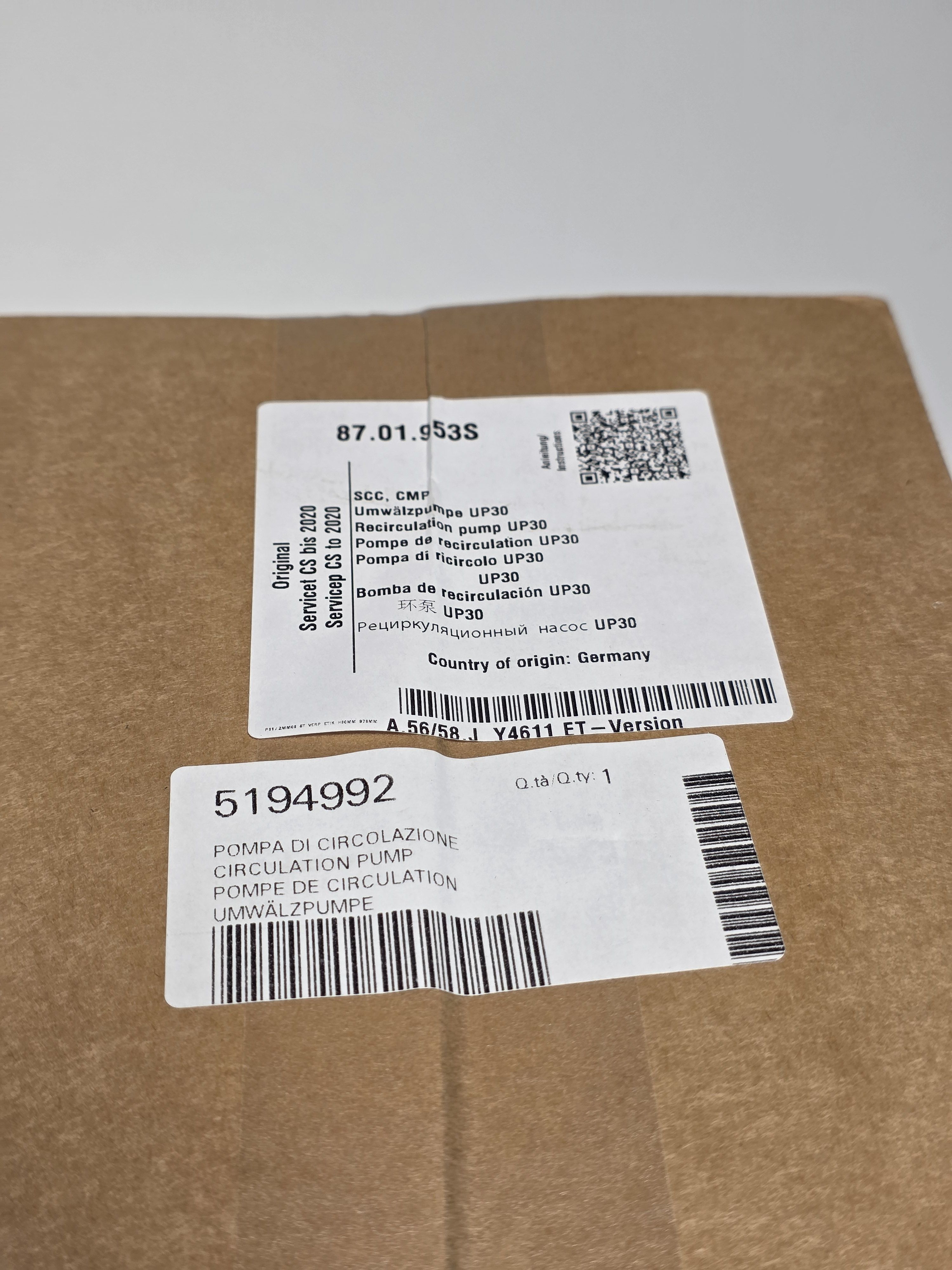 Насос рециркуляционный в сборе UP30 87.01.953S / 56.00.153P для SCC линия 61-202 |