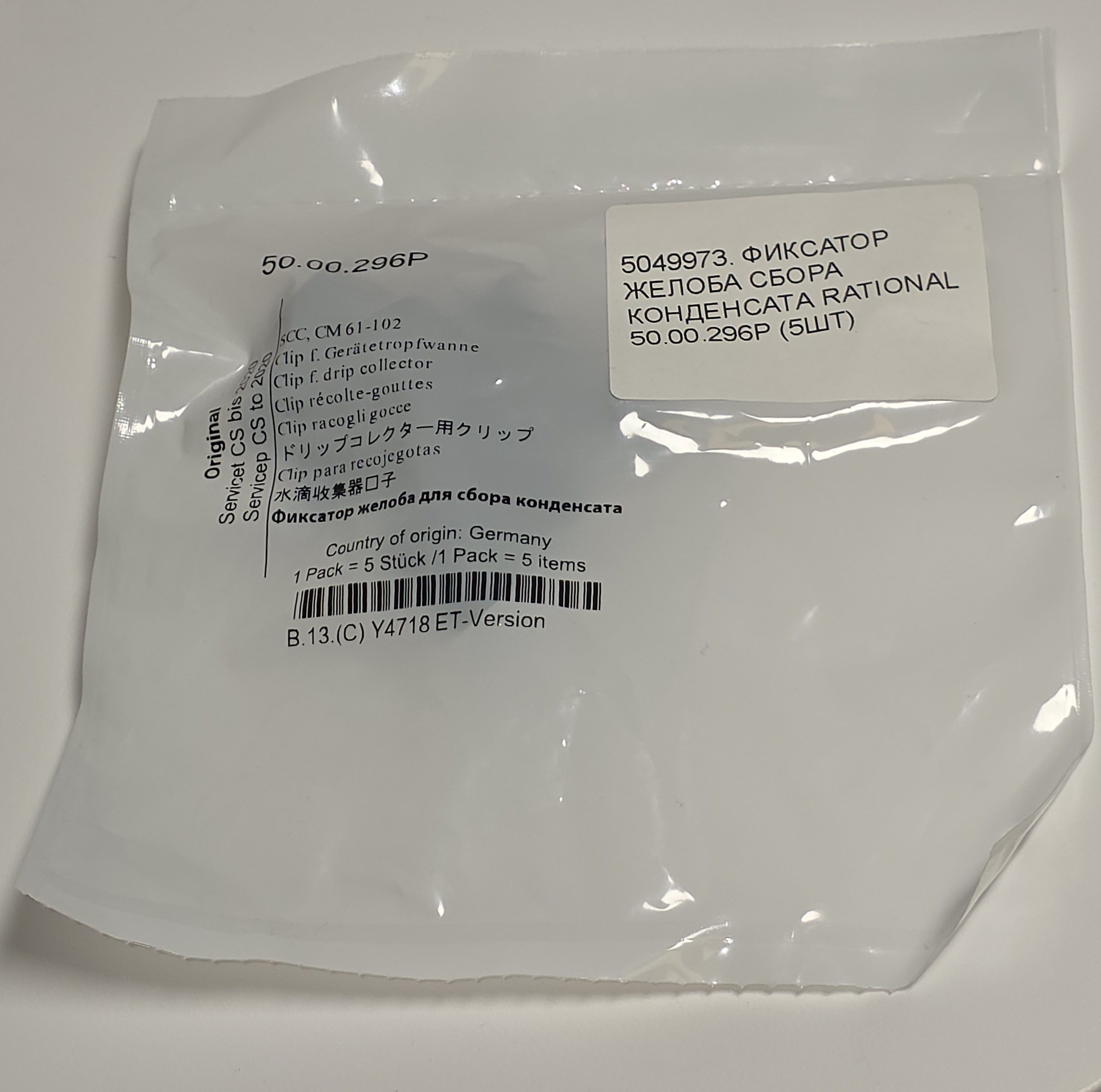 Фиксатор желоба для сбора конденсата Rational 50.00.296P комплект 5шт. Original 1шт. |