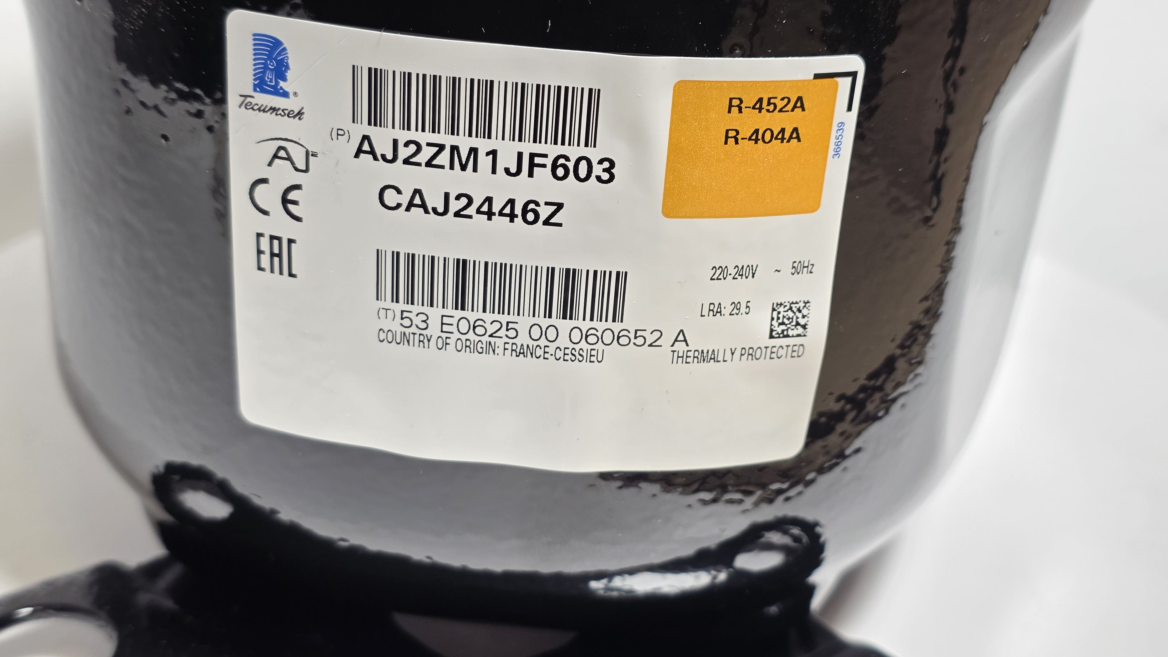 Компрессор CAJ 2446 Z под пайку (R404A) 1203Вт код AJ2ZM1JF603 (Tecumseh) |